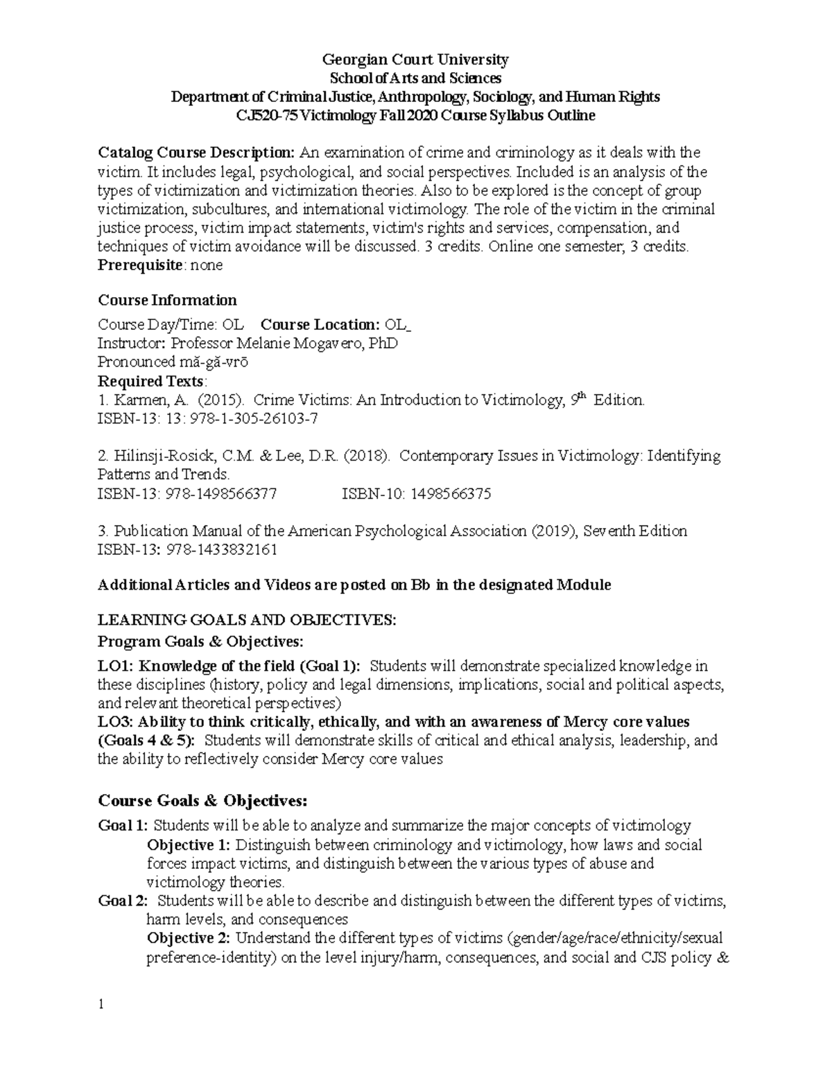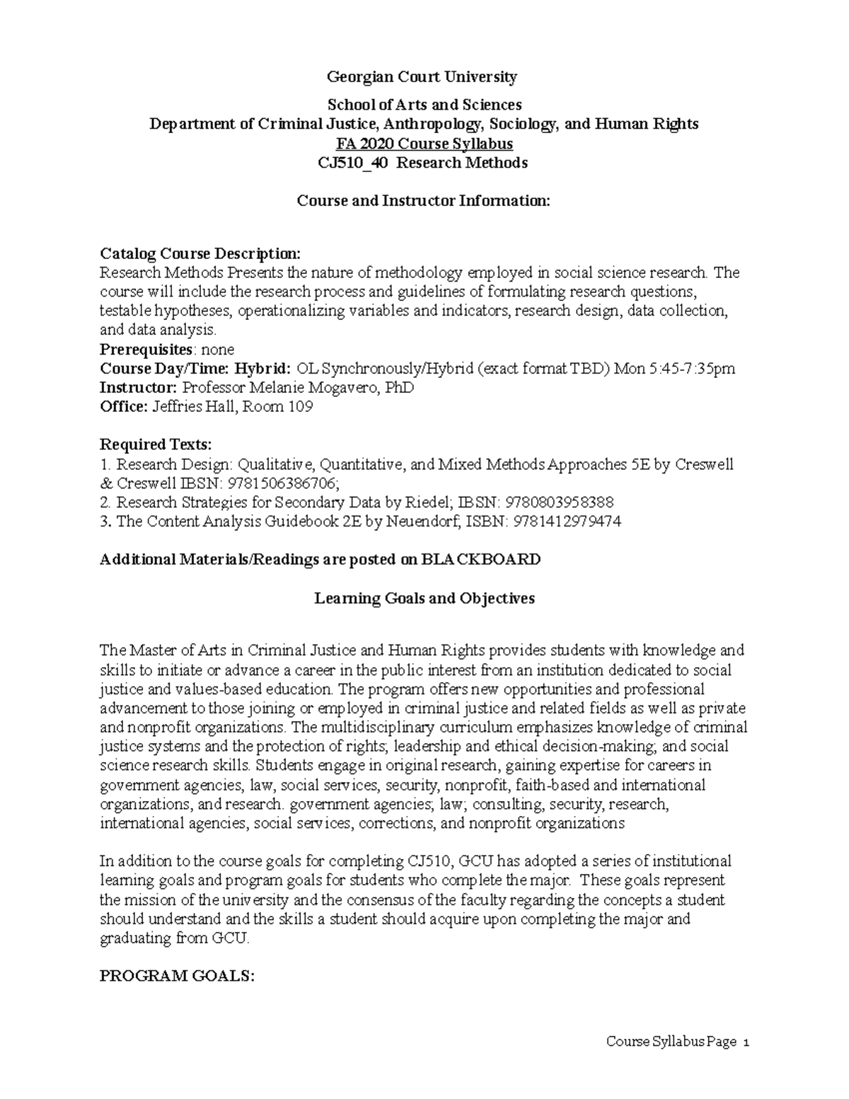 CJ520 Syllabus FA2020 Court University School of Arts and