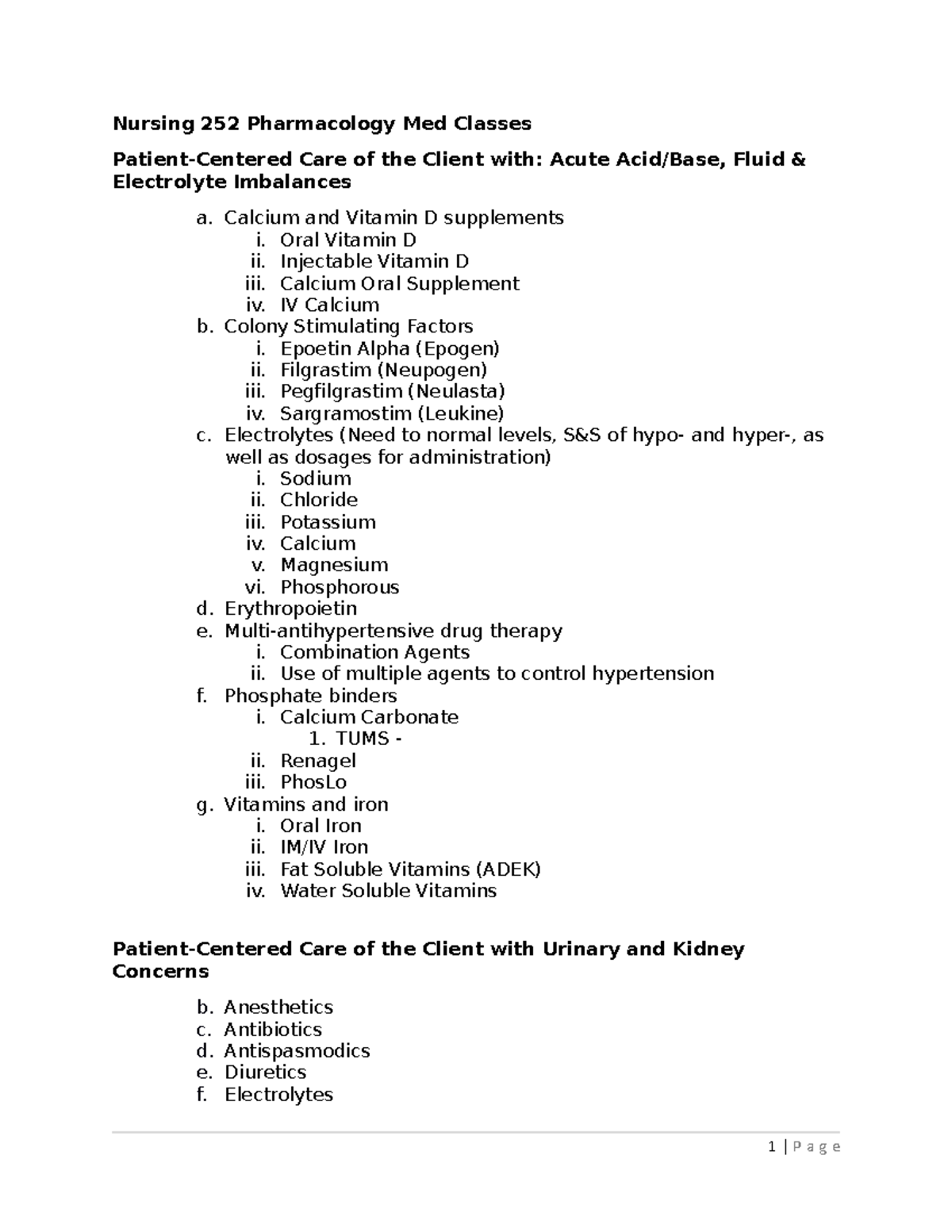 Nursing 252 Pharmacology Med Classes NS 208 GCC Studocu