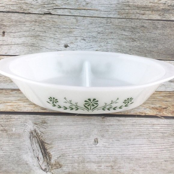 Glasbake Kitchen Mcm Glasbake J2352 Divided Oval Green