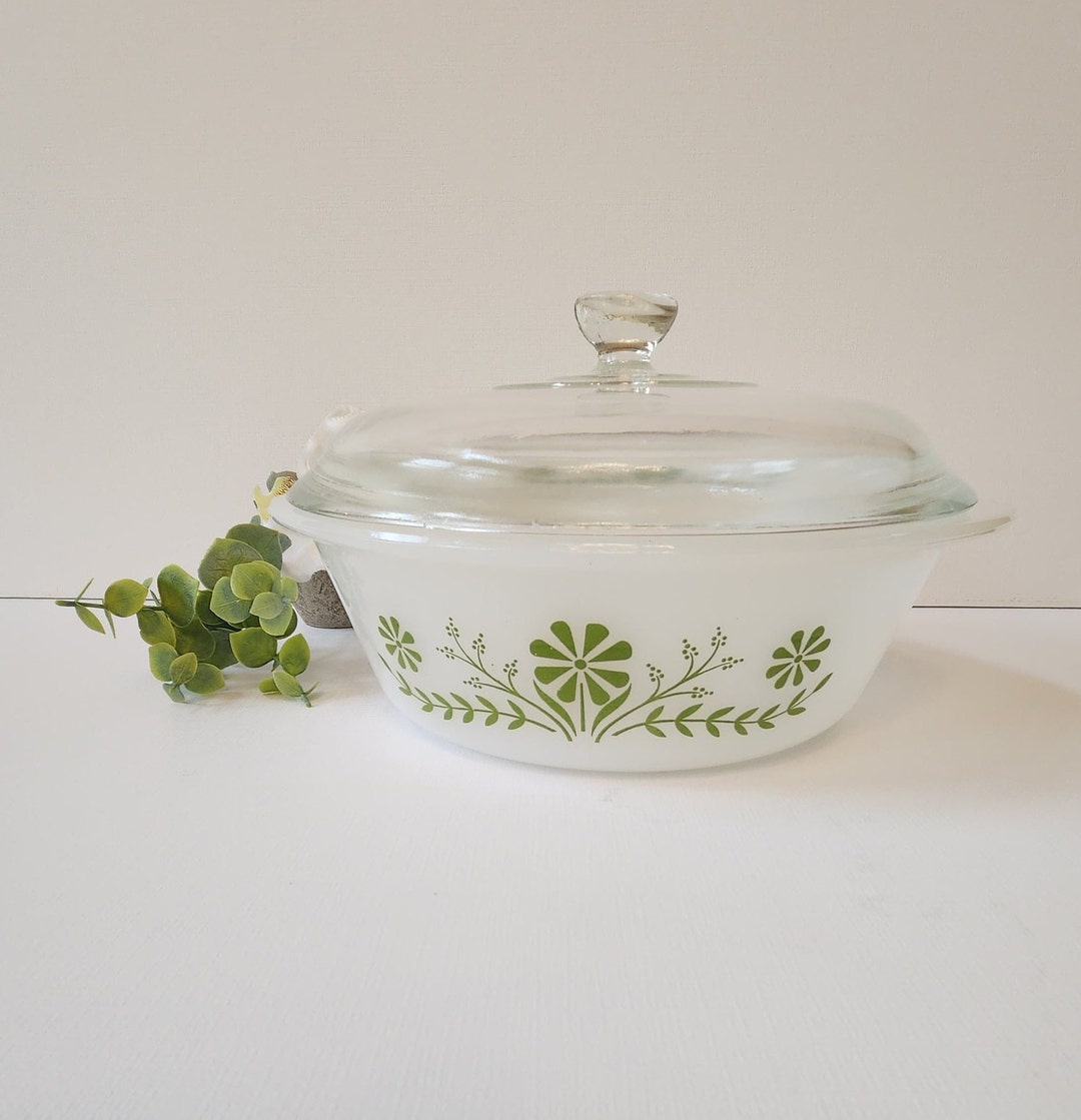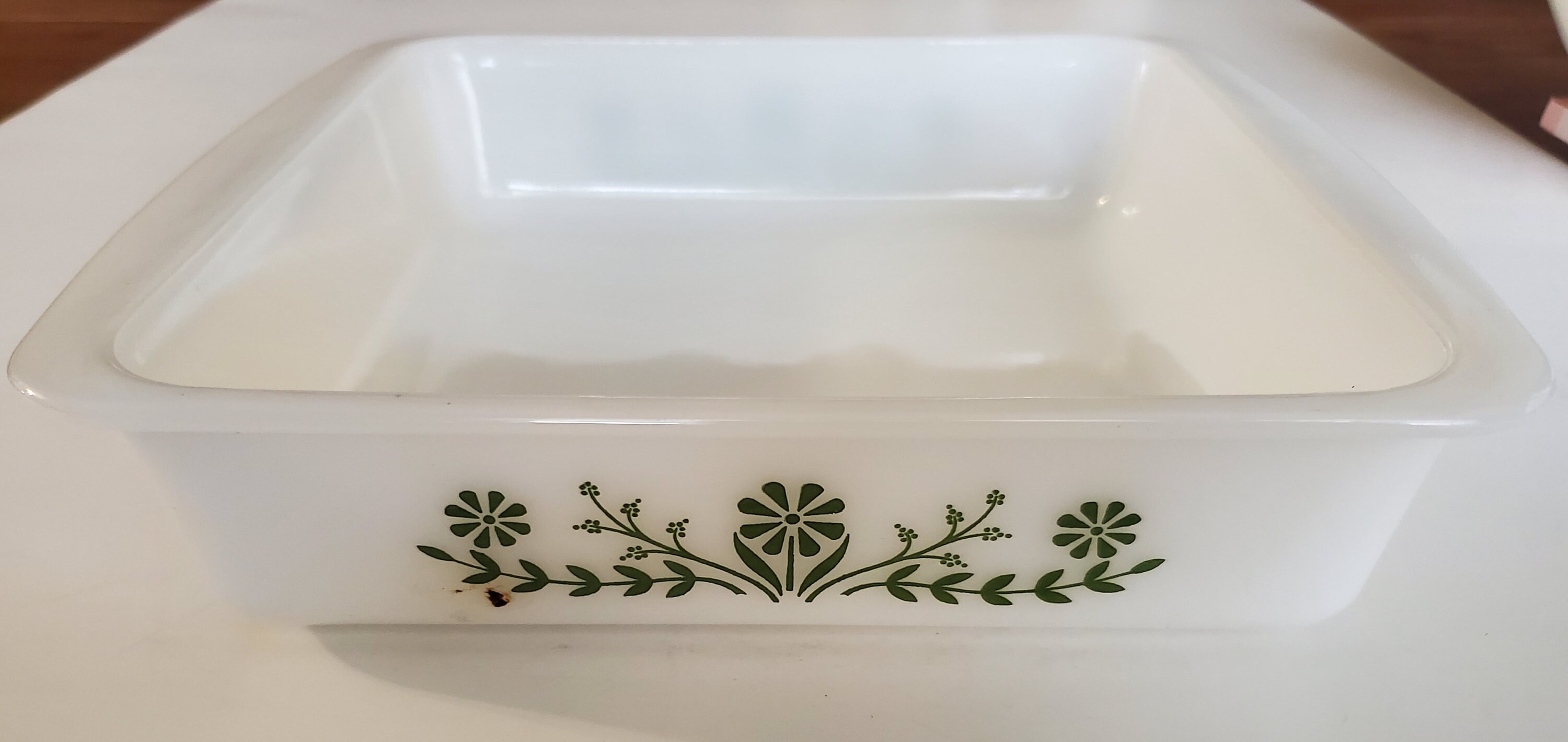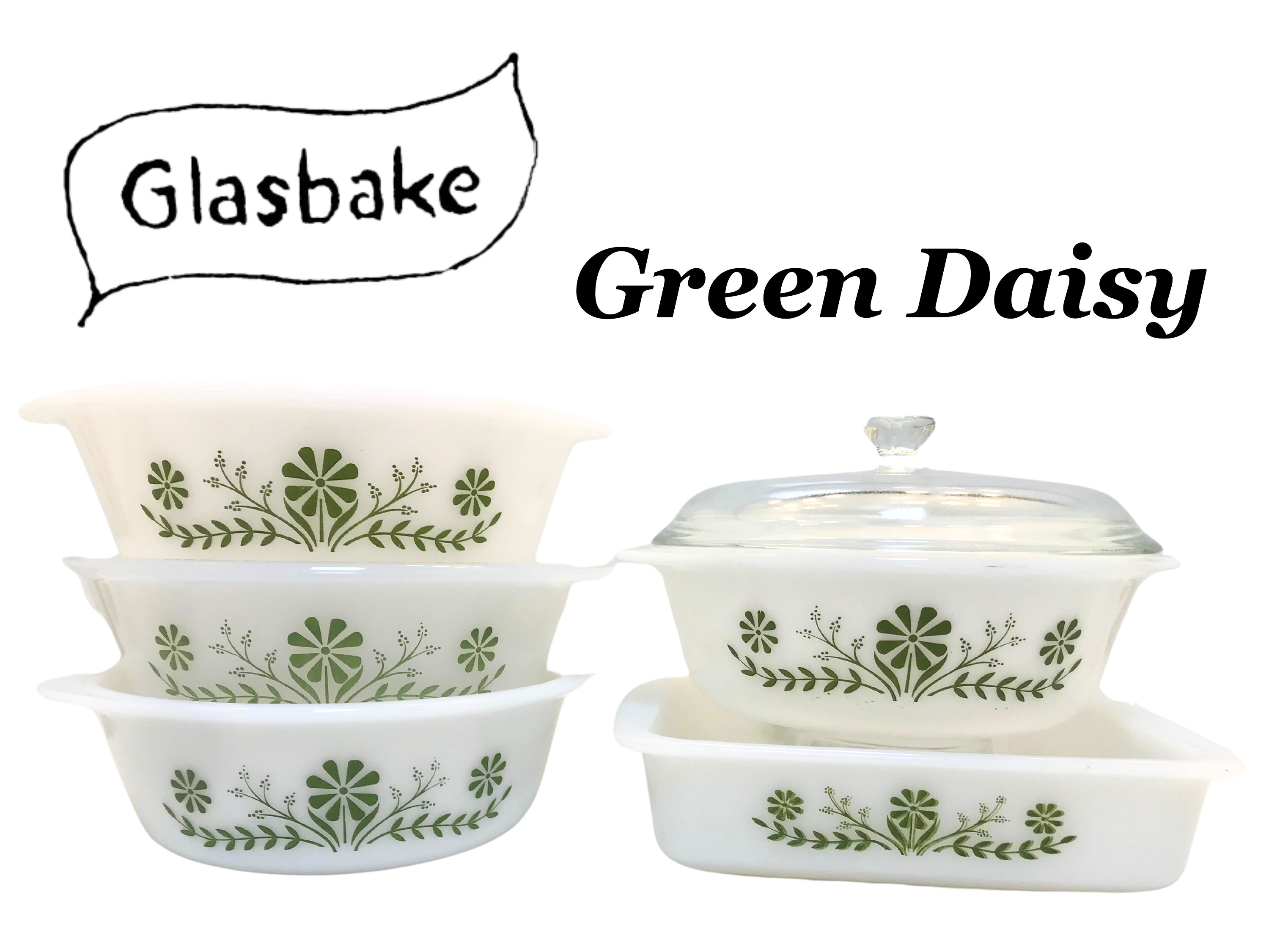 Glasbake Green Daisy, Milk Glass Baking Dishes Etsy