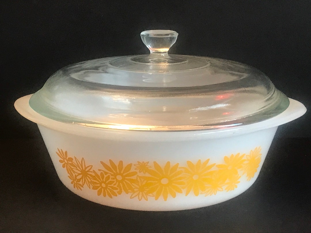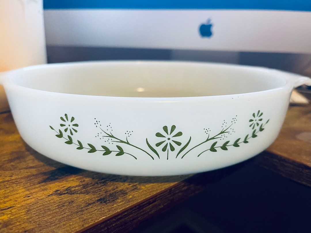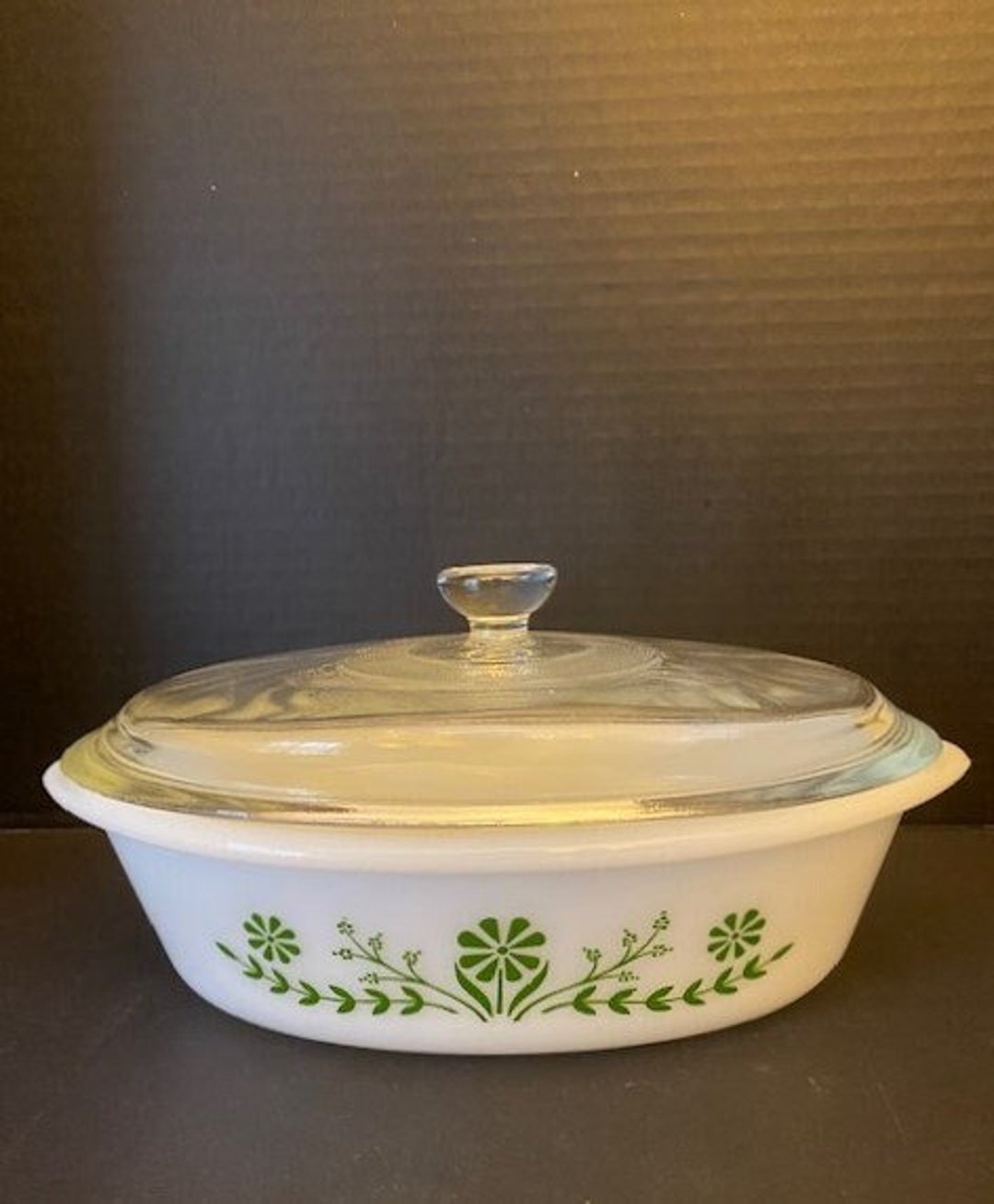 Glasbake Green Daisy, Milk Glass Baking Dishes Etsy