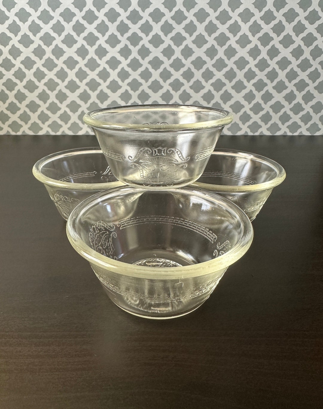 Glasbake Custard Cups Set of 4; Vintage; Glass Baking Cups; Ramekins