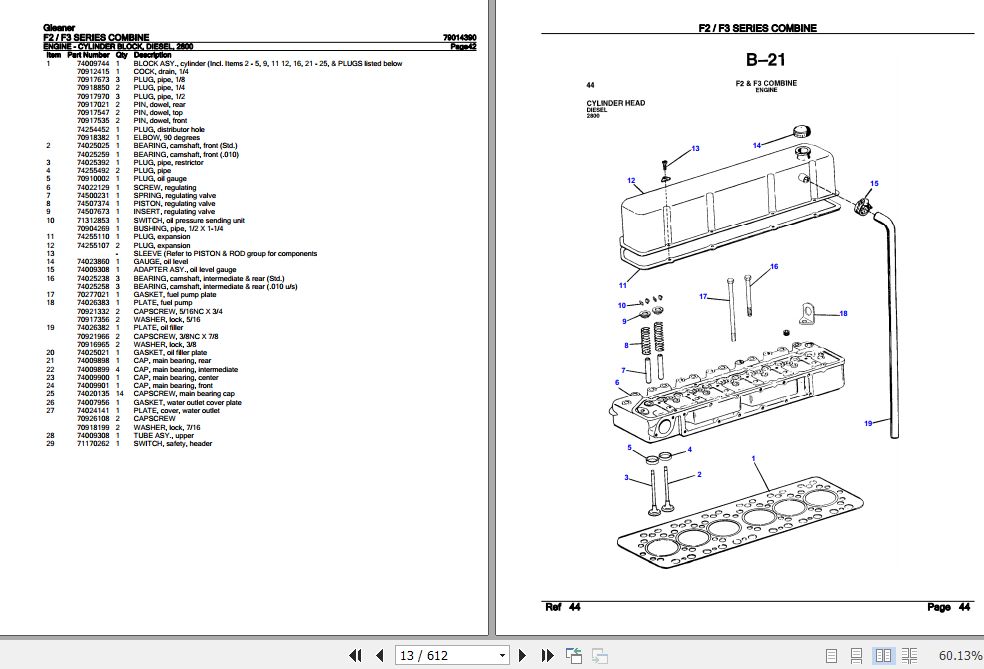 Gleaner Combine F2 F3 Series Parts Catalog 79014390