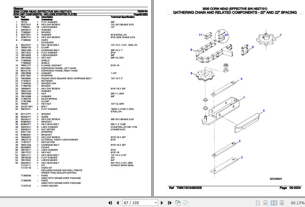 Gleaner Hugger Corn Head 3000 Parts Catalog 79021707