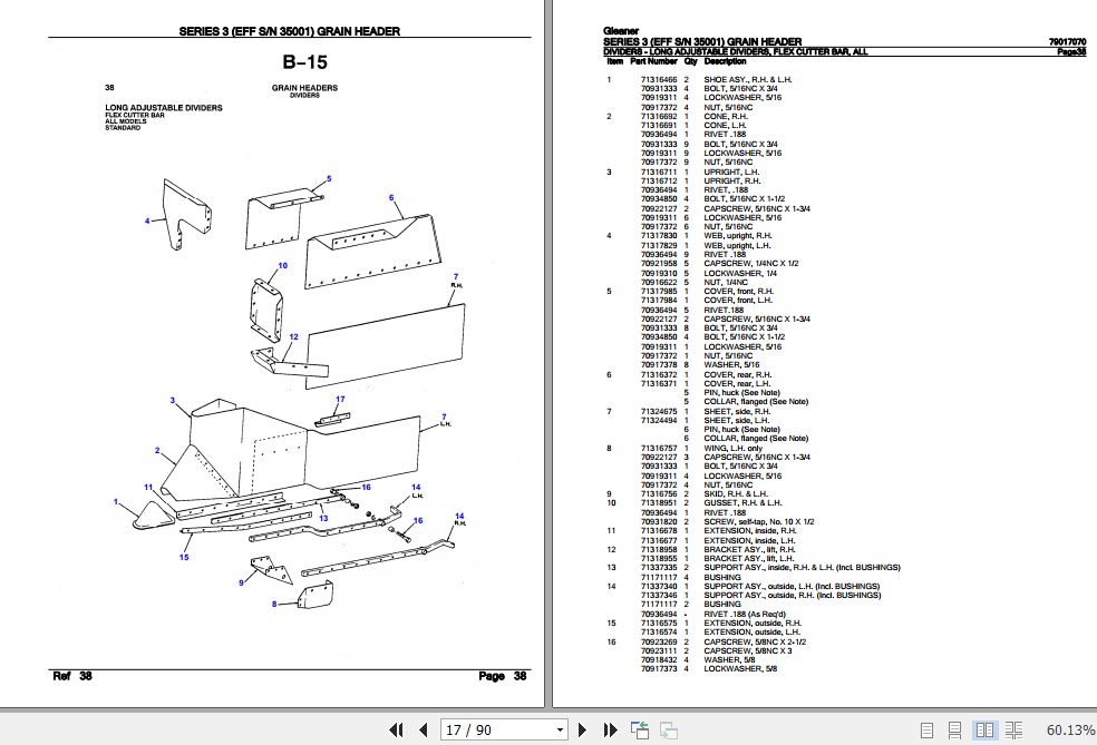 Gleaner Grain Header Series 3 Parts Catalog 79017070