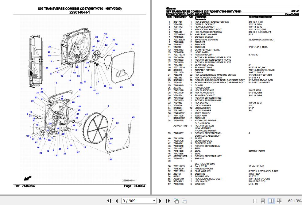 Gleaner Transverse Combine T71 2025 Spare Parts Catalog