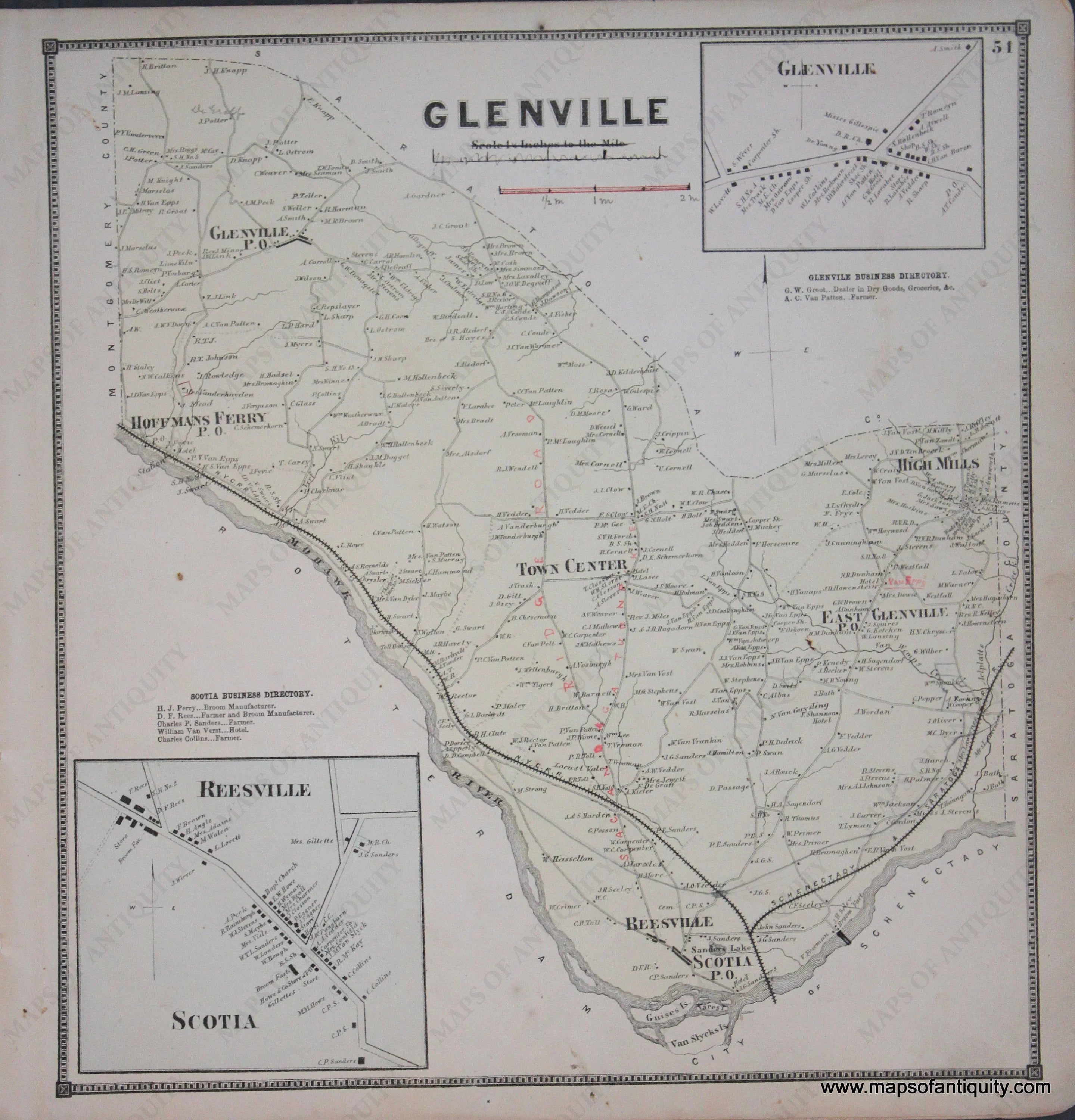 1866 Genuine Antique Map Glenville (New York ) Maps of Antiquity