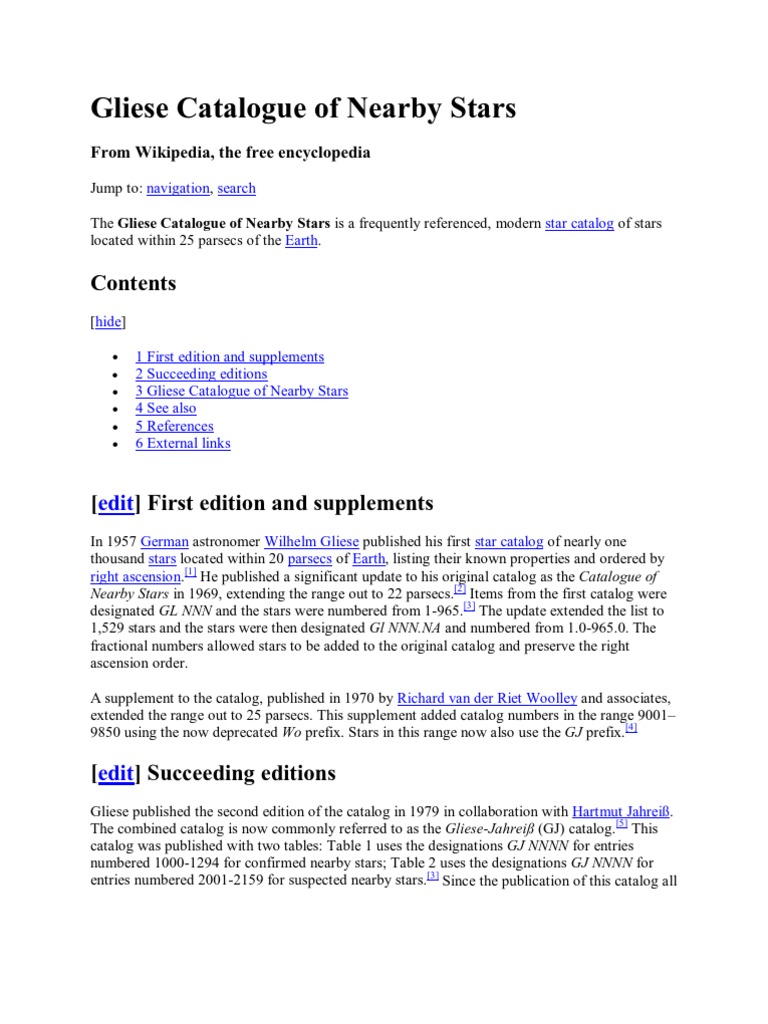 Gliese Star Catalog