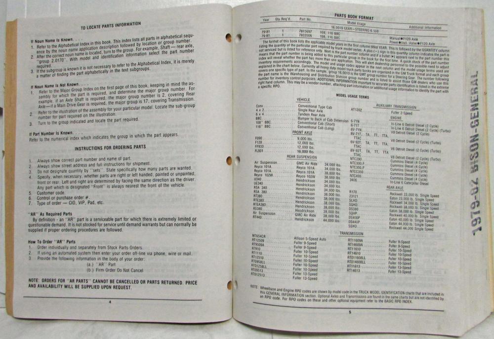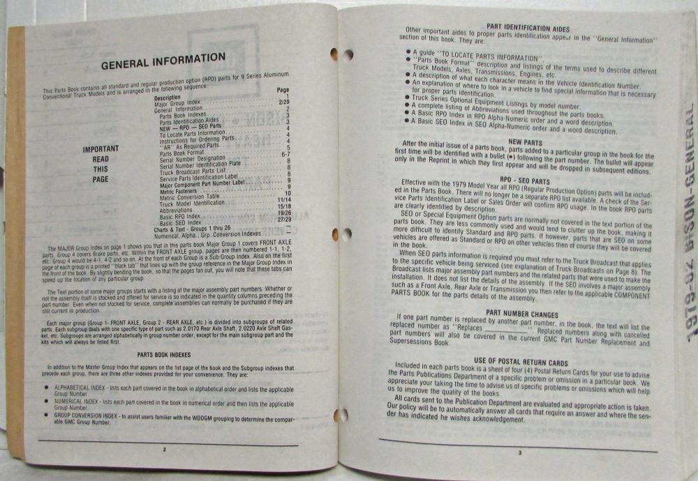 19791982 GMC General Chevy Bison Heavy Duty Trucks Parts Book Alum