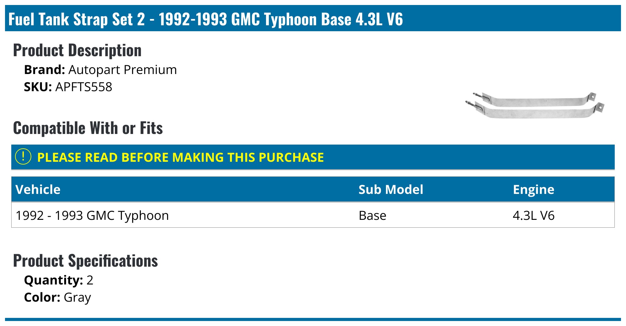 19921993 GMC Typhoon Fuel Tank Strap Autopart Premium APFTS558