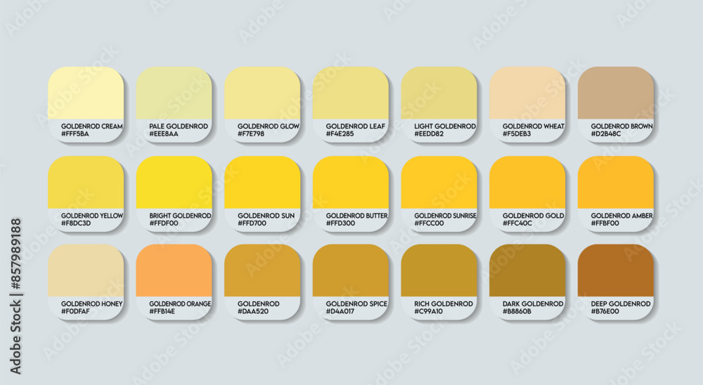 Goldenrod Color Palette, goldenrod Color Guide Palette with Color Names
