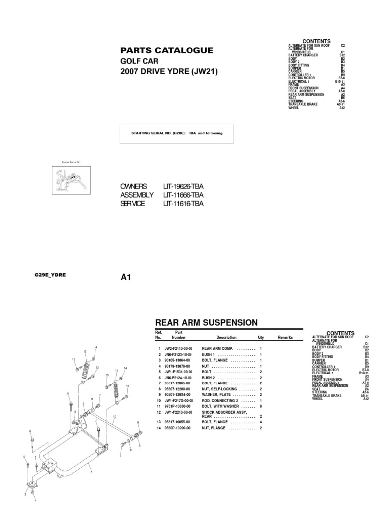 Ydre Golf Cart Parts Catalogue PDF Axle Steering
