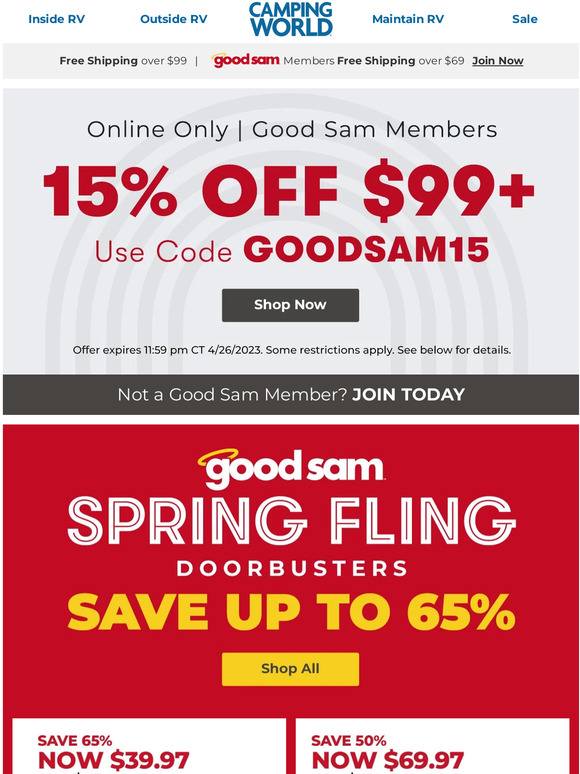 Camping World Good Sam Exclusive Offer 15 off 99+ Milled