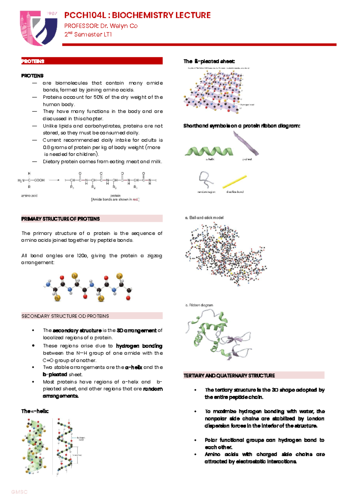 Biochemistry LEC M4 Doc Co PROFESSOR Dr. Welyn Co 2 nd Semester