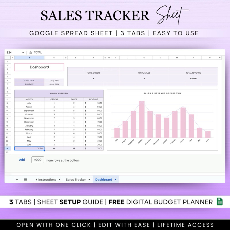 ⚡️INSTANT⚡️Editable Sales Tracker Template, Sales Tracker Spreadsheet