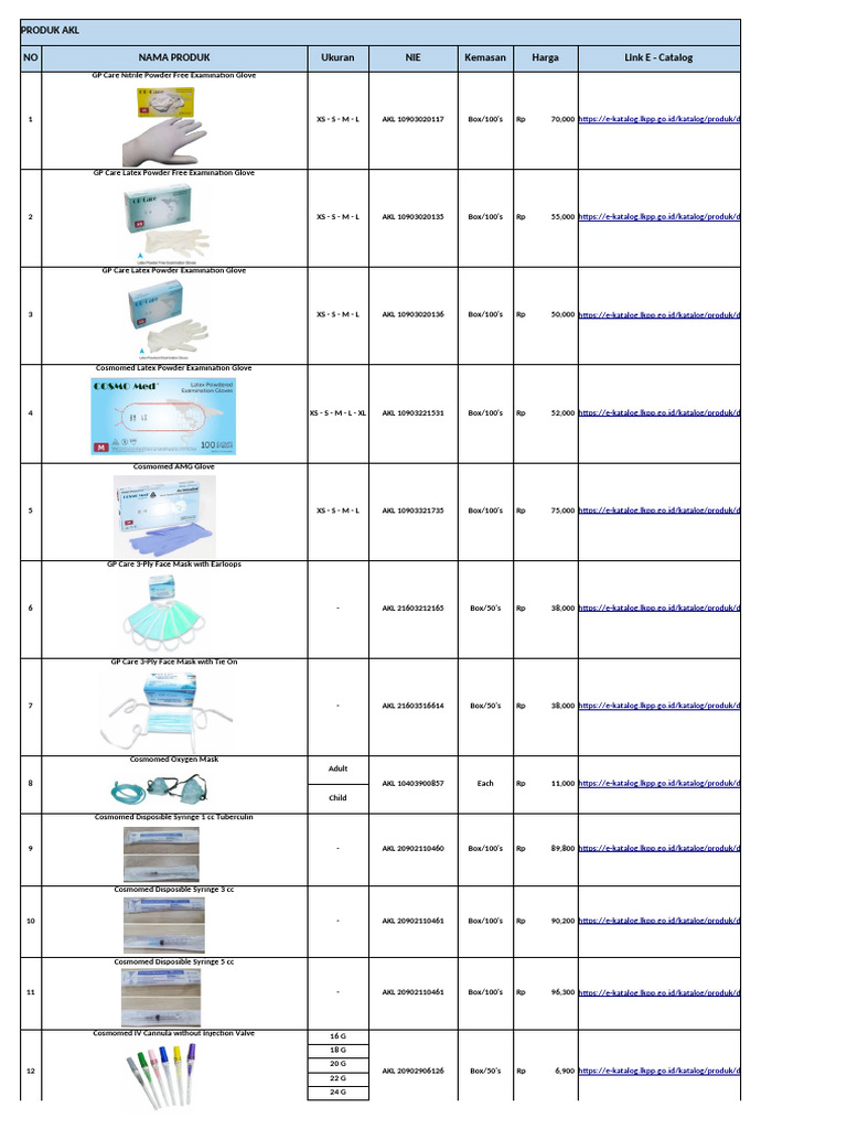 Daftar Produk Tayang EKatalog PT Gpi Tayang 2024 PDF Medical