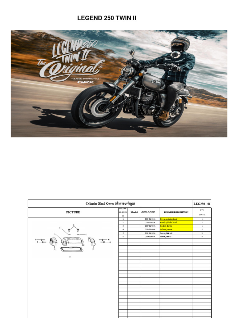 Legend 250 Twin GPX Part Catalogue1 PDF Valve Clutch