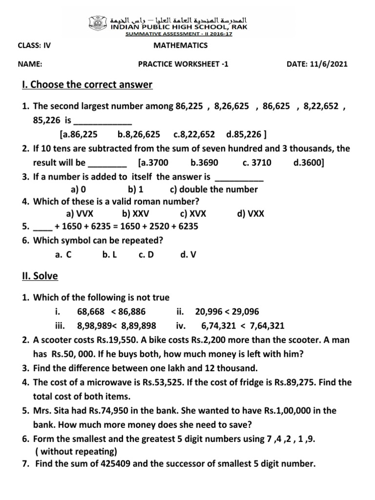 Grade 4 Practice Sheet11 worksheet Live Worksheets