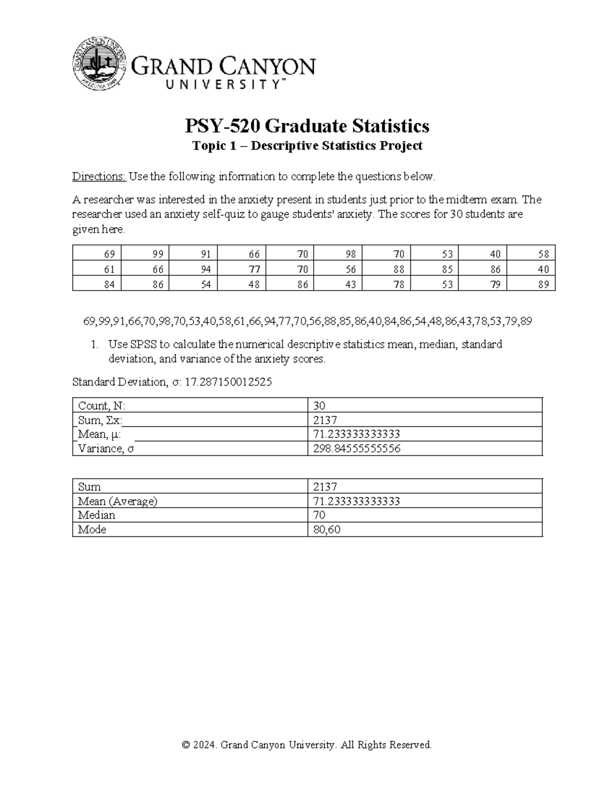 PSY520RST1Descriptive Statistics Project (2) (1) PSY520 Graduate