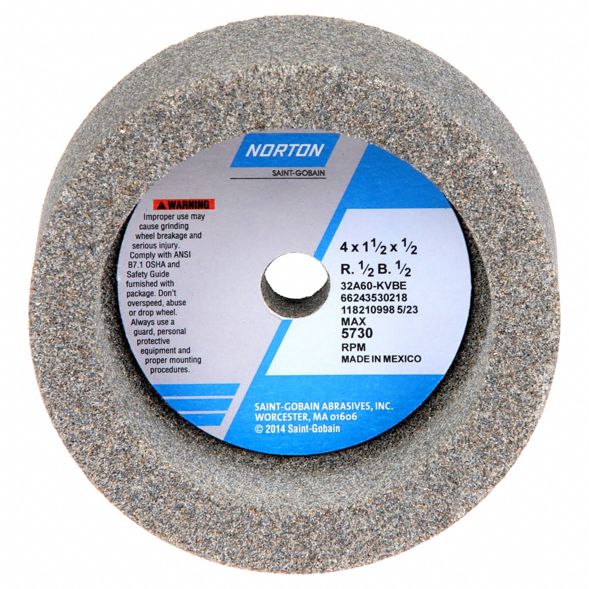 NORTON, Type 6, 5" x 1 1/2" x 1 1/4", Straight Cup Grinding Wheel