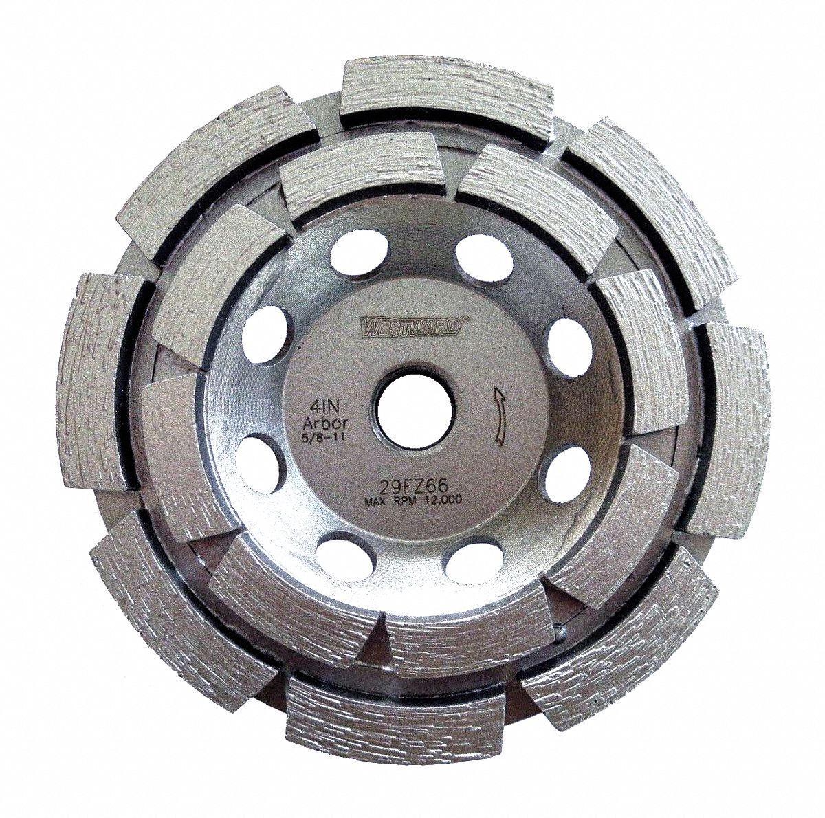 WESTWARD, Double Row, 4" Dia, Segment Cup Grinding Wheel 29FZ66