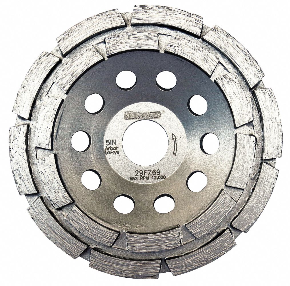 WESTWARD, Double Row, 5" Dia, Segment Cup Grinding Wheel 29FZ69