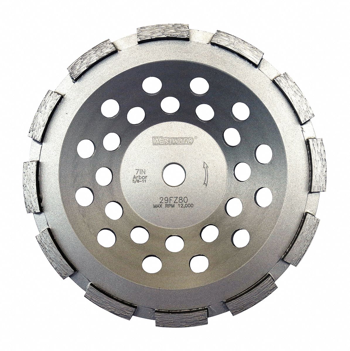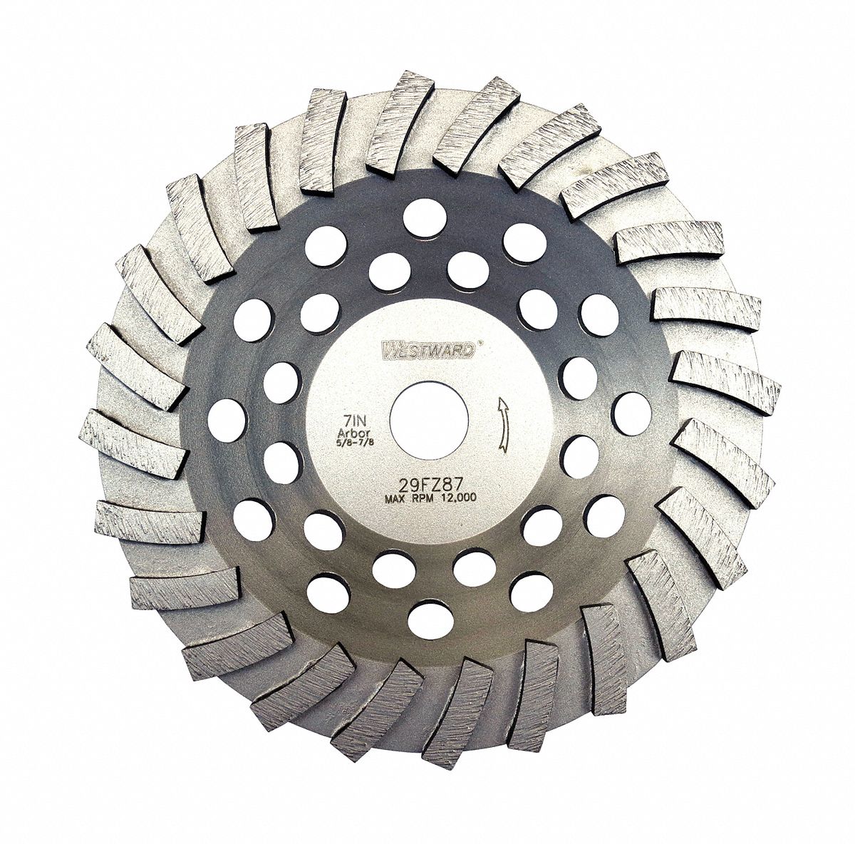 WESTWARD, Single Row, 7" Dia, Segment Cup Grinding Wheel 29FZ80