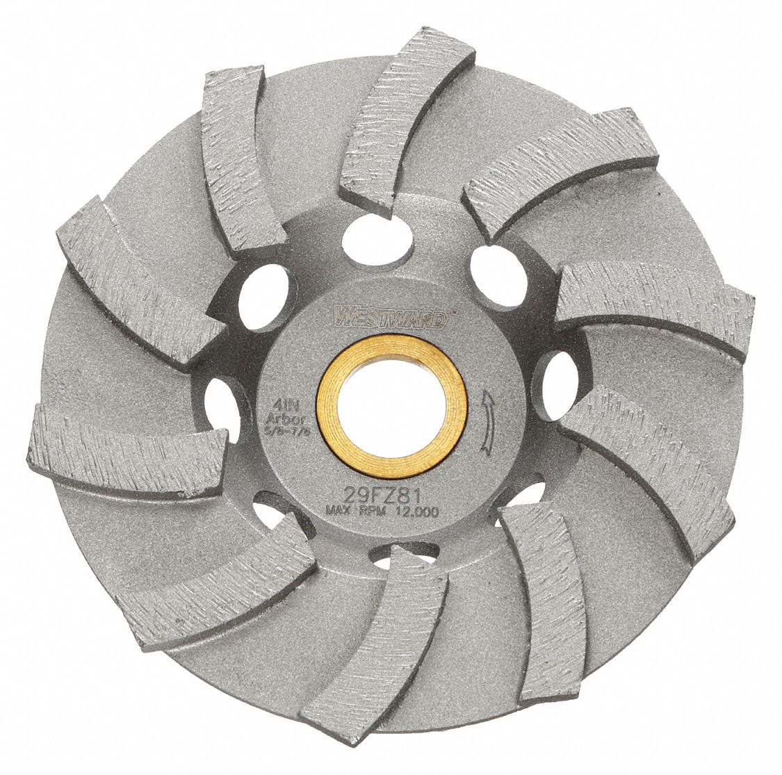 WESTWARD, Turbo, 4 in Dia, Segment Cup Grinding Wheel 29FZ8129FZ81
