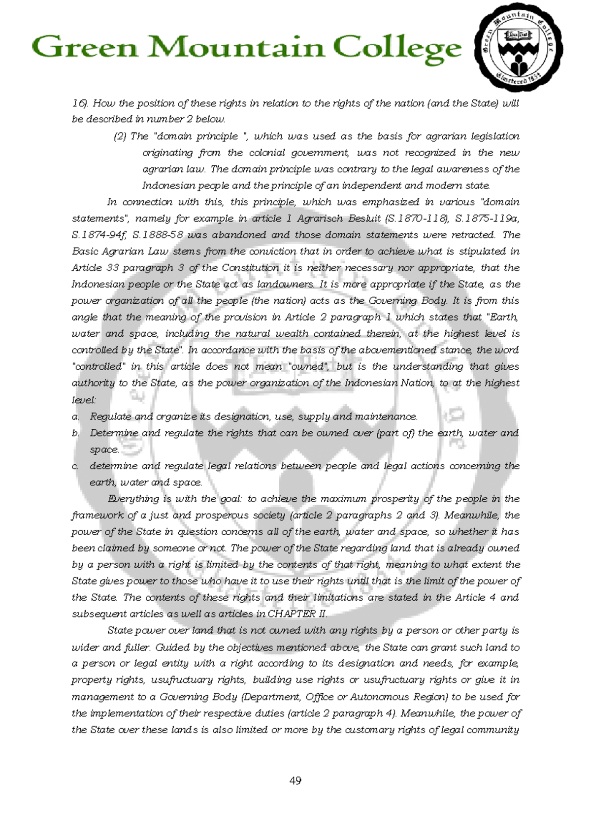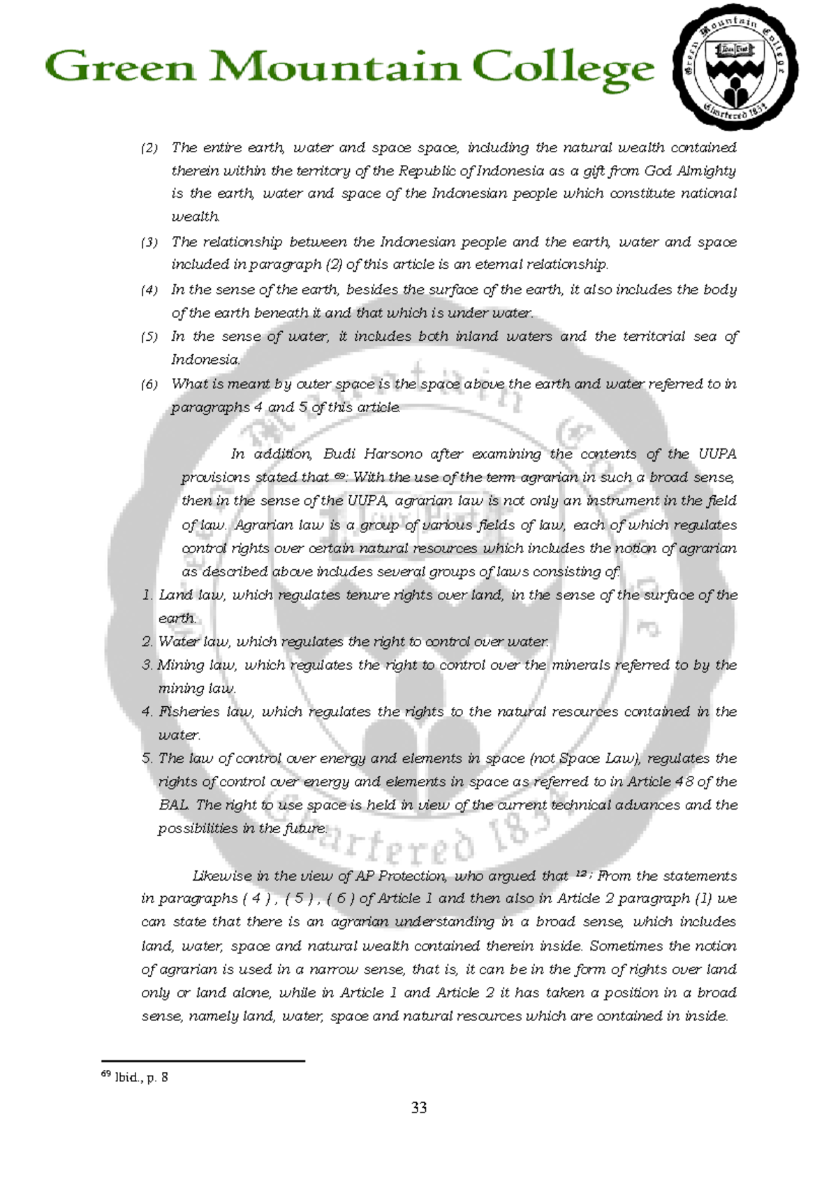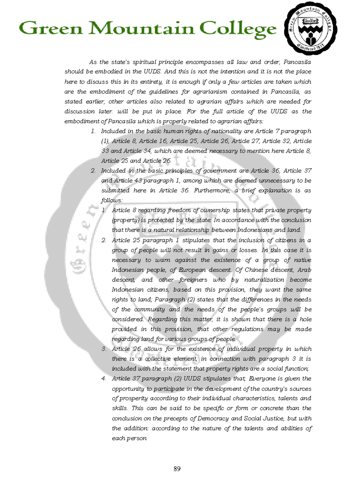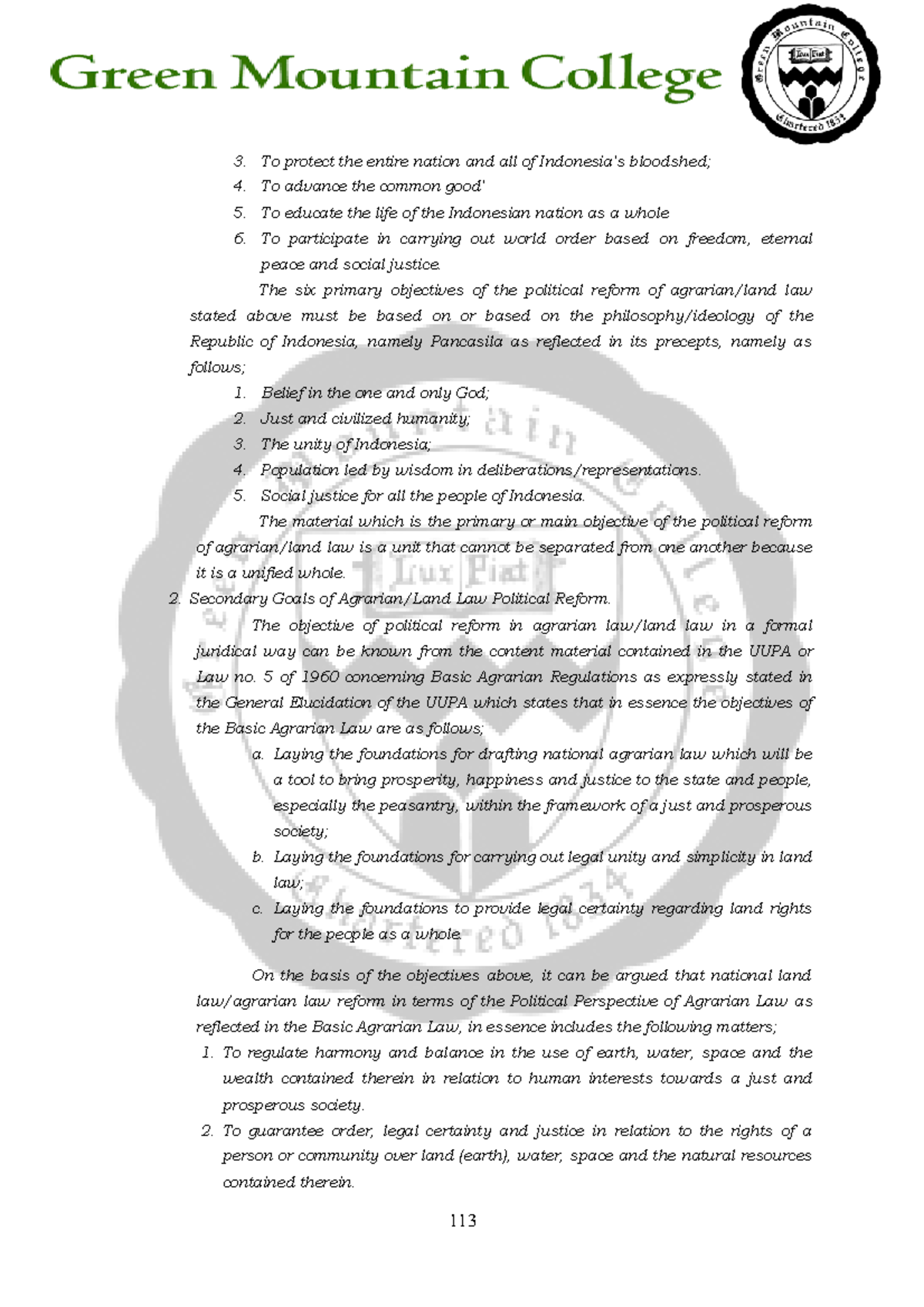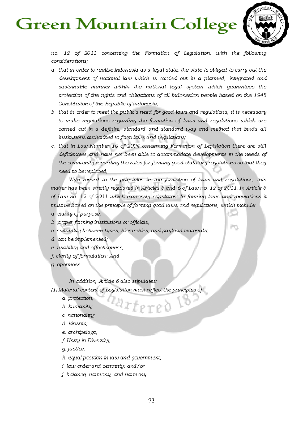 Green Mountain College10 no. 12 of 2011 concerning the Formation of