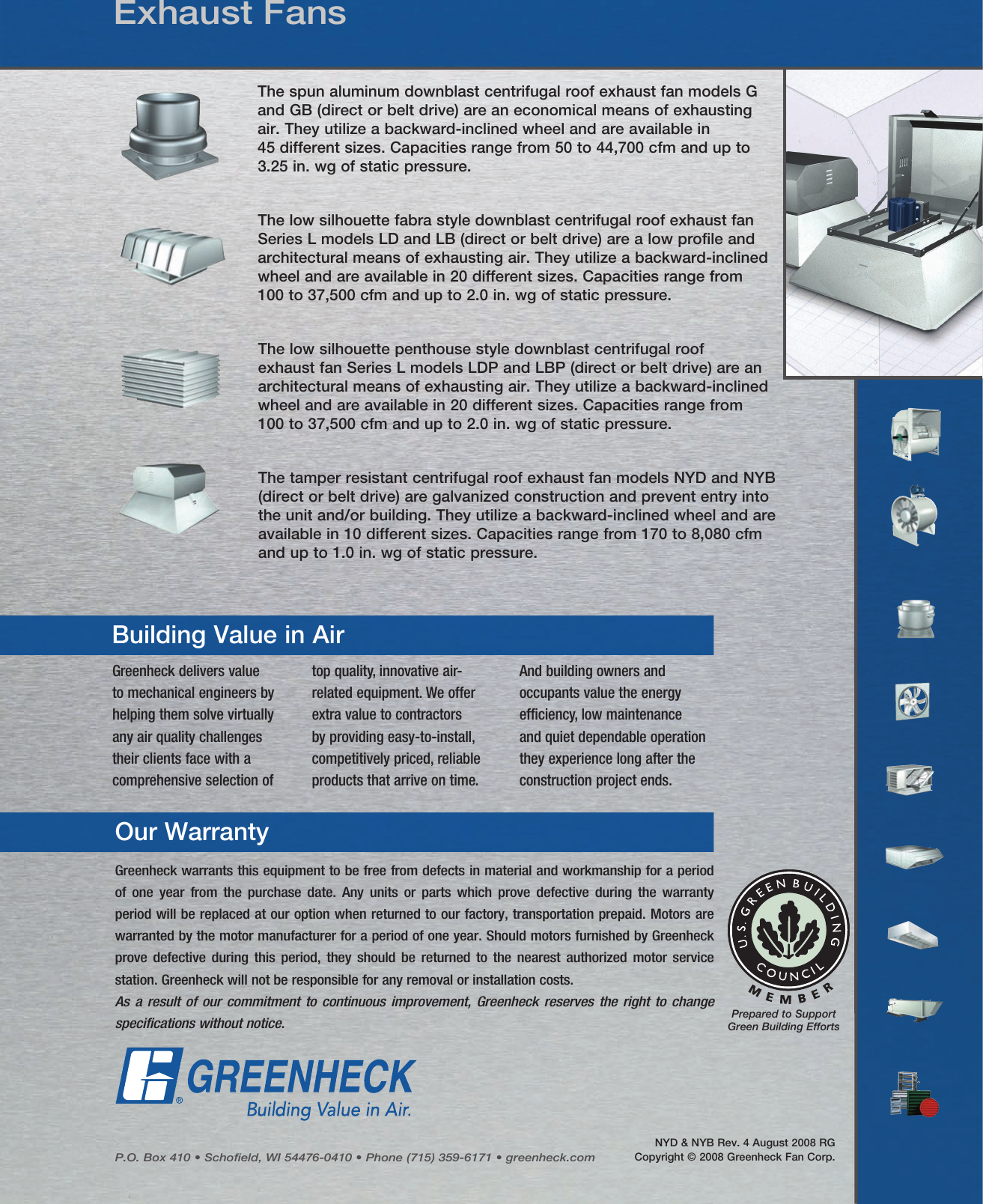 Greenheck Fan Centrifugal Roof Exhaust Fans Nyb Users Manual