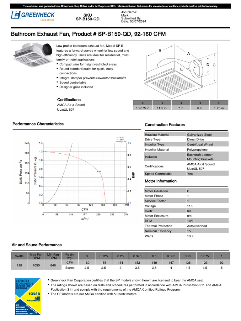 Greenheck Modelo Sbe Ficha Tecnica PDF