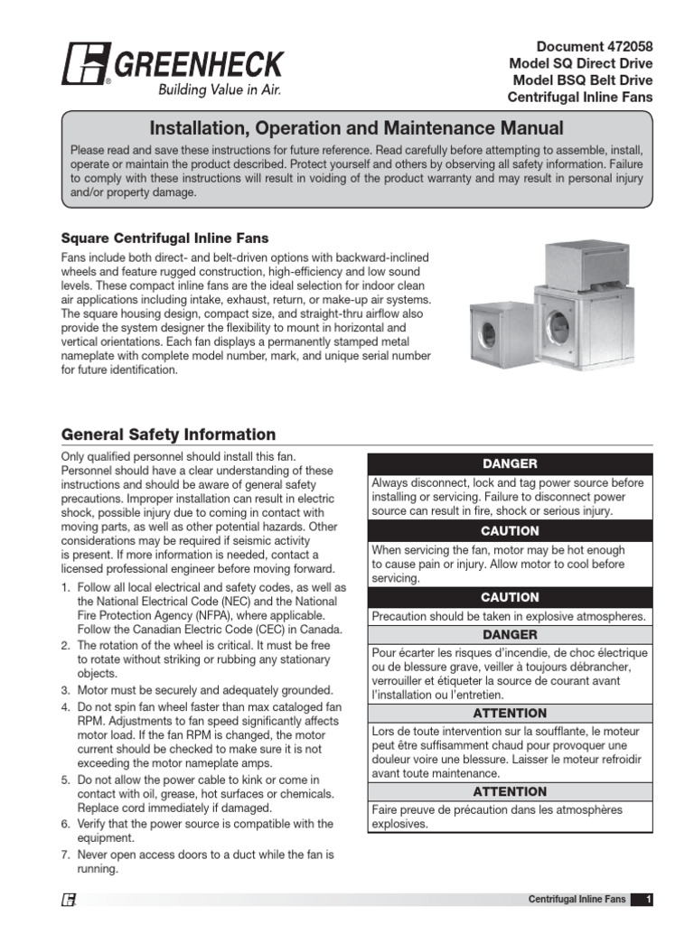Greenheck Fan Sq Bsq Users Manual