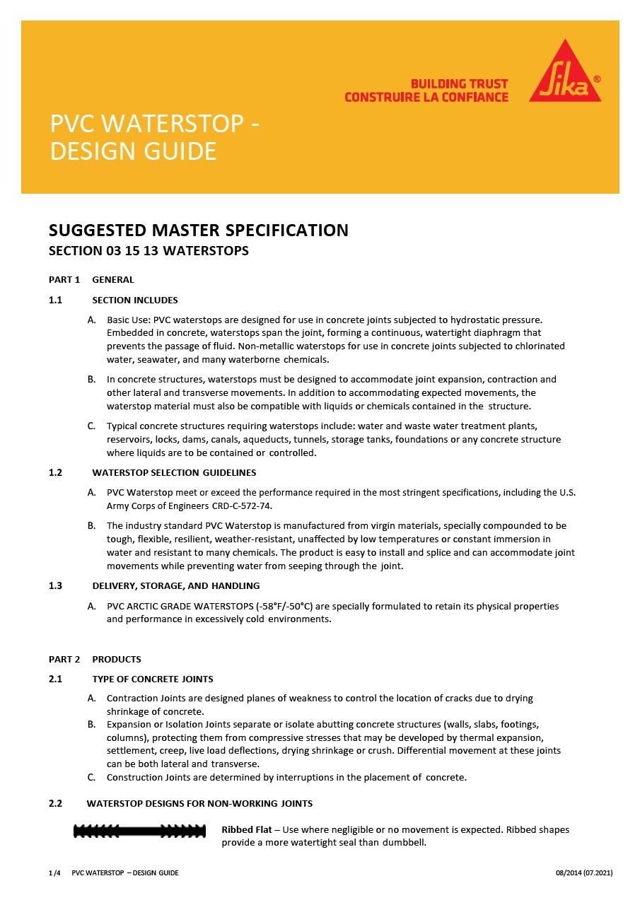 Sika Greenstreak PVC Waterstop Indcon Inc.