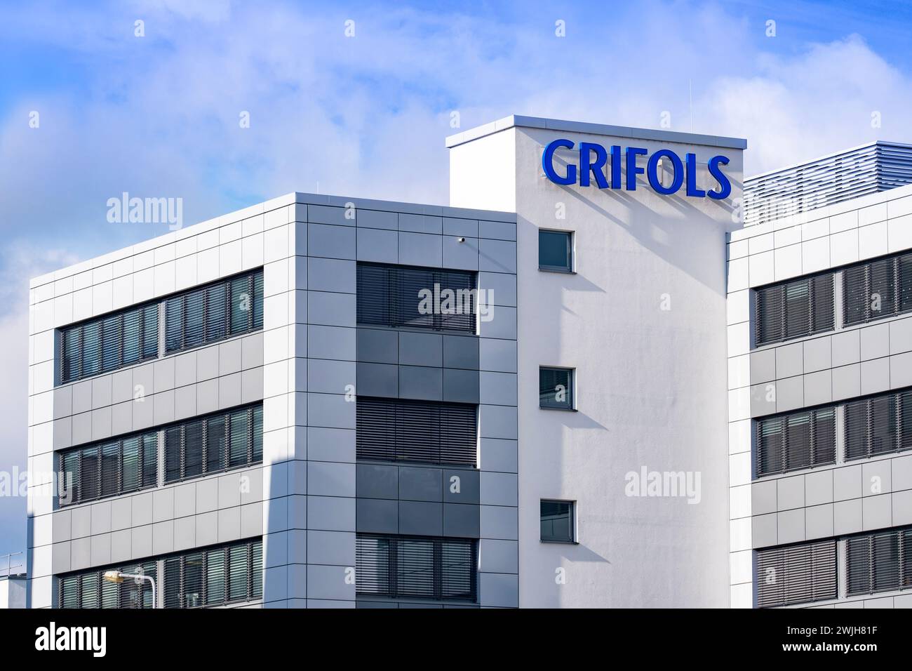 building with letters GRIFOLS, plasmaderived medicines, medications