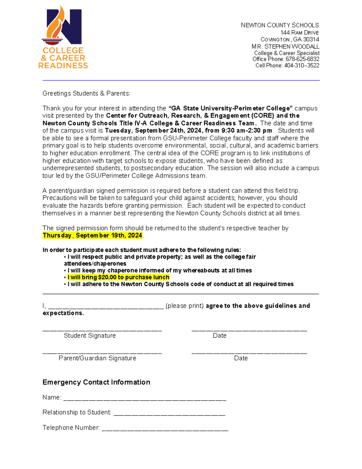 GSUPerimeter College CORE Permission Form 2425 NEWTON COUNTY