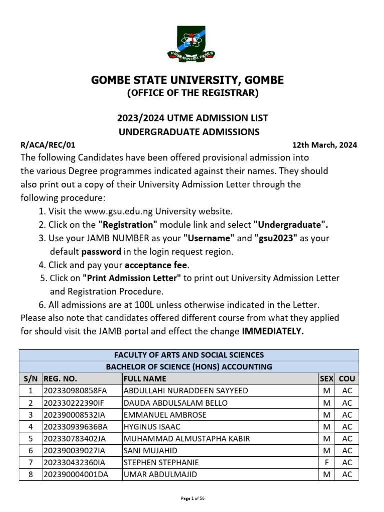 GSU Undergraduate Second Admission 20232024 PDF