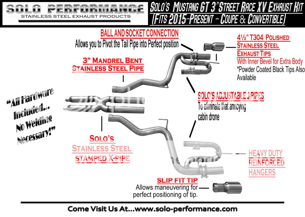 Solo Performance 2015 Mustang GT Street Race XV 3" Catback Exhaust Kit