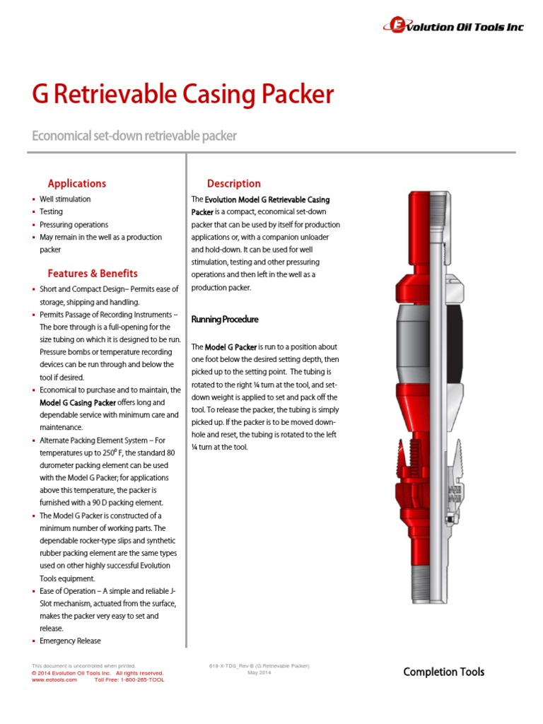 G Retrievable Packer Technical Datasheet PDF Pipe (Fluid Conveyance
