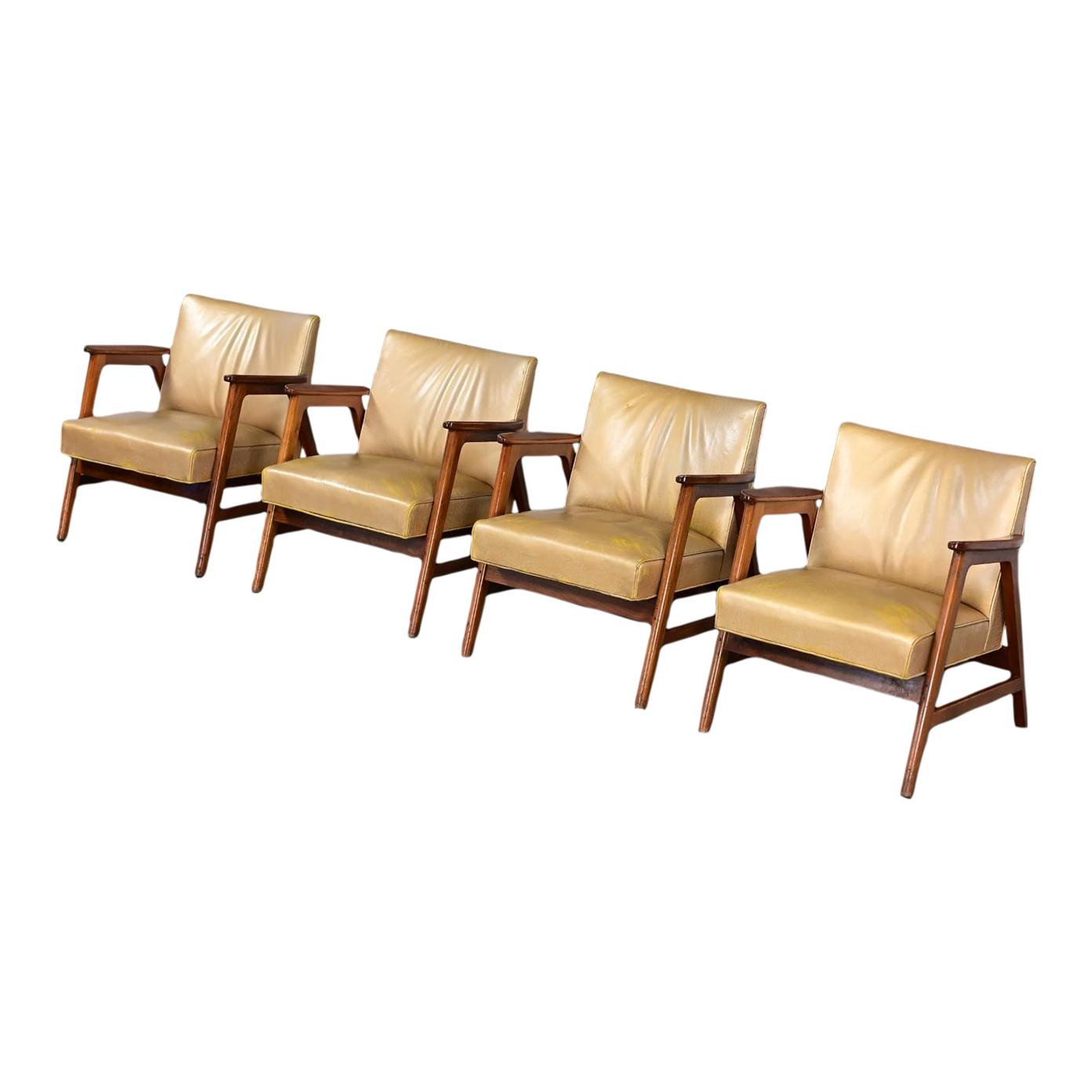 Set of 4 Mid20th Century Mid Century Modern Gunlocke Armchairs Gold
