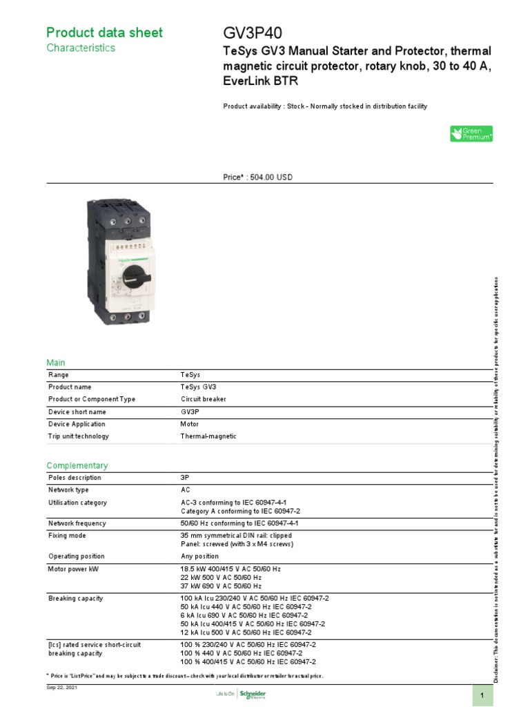 GV3P40 Schneider Electric Schneider Electric TeSys Thermal Circuit