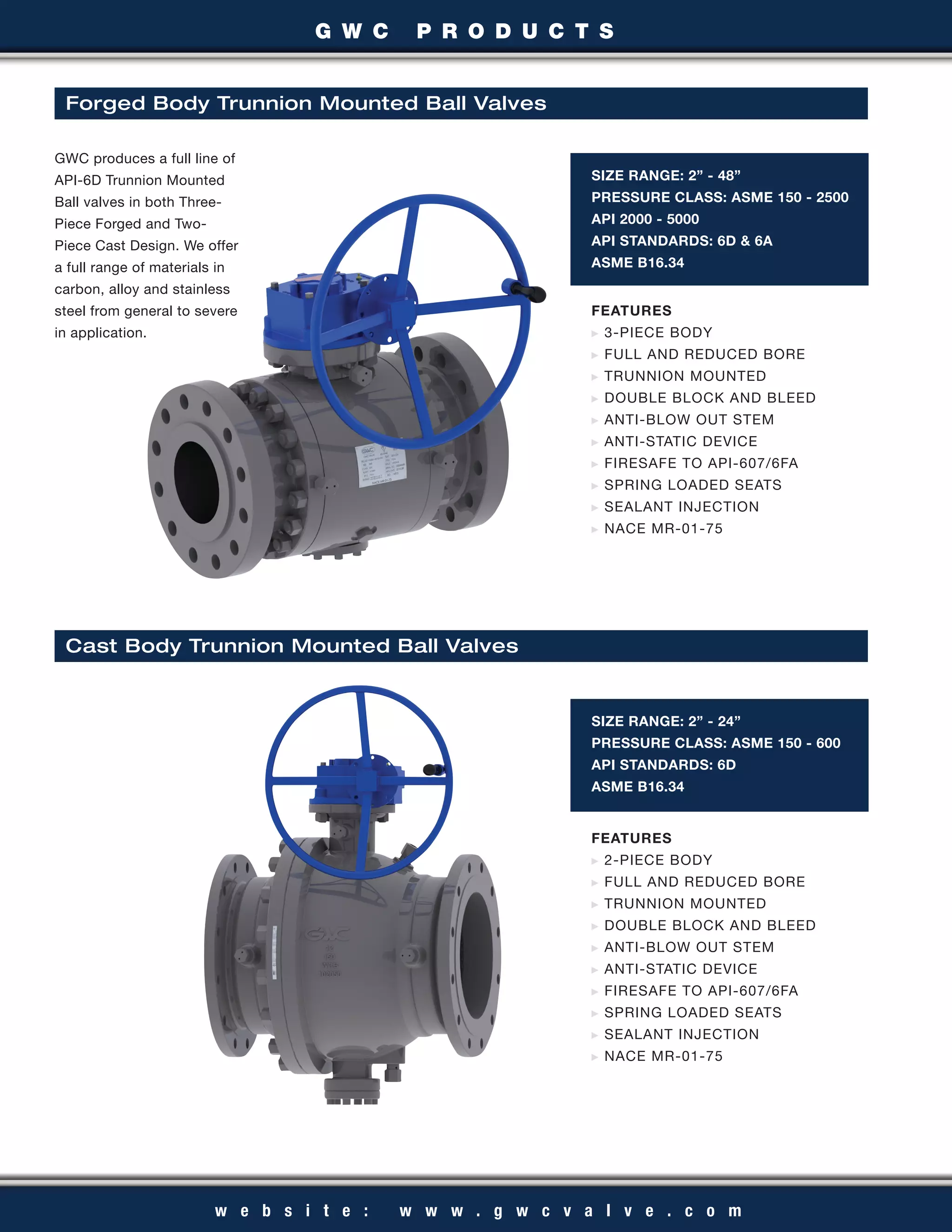 GWC Valve International Trunnion Mounted Ball Valves PDF