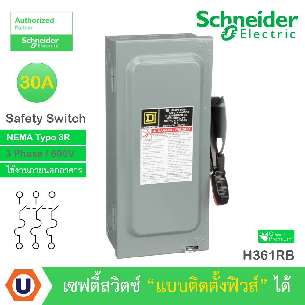 Schneider เซฟตี้สวิทช์ กันฝน 3P 30A 600V H361RB Safety Switch สามารถ
