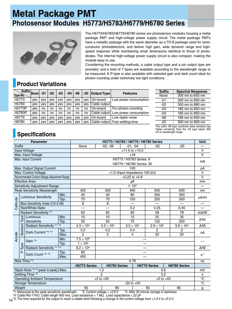 Hamamatsu Data Sheet PMT Packages PDF Power Supply Electrical