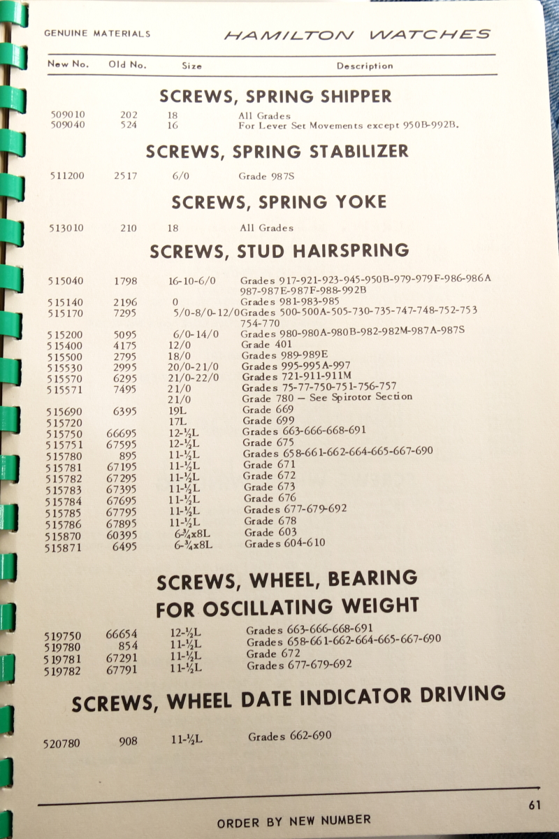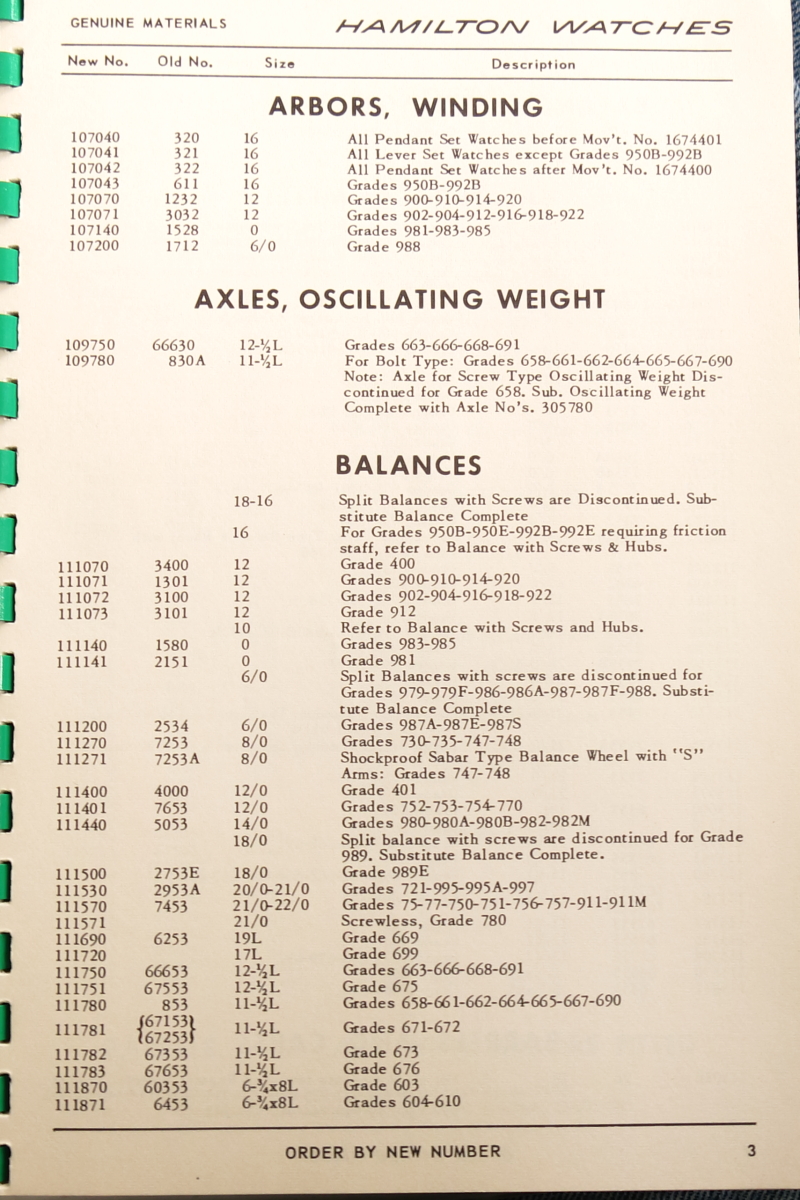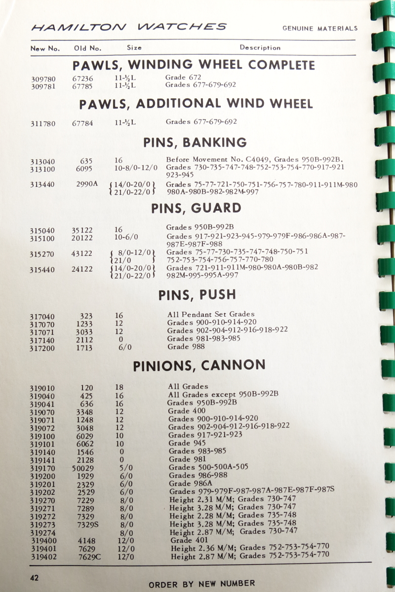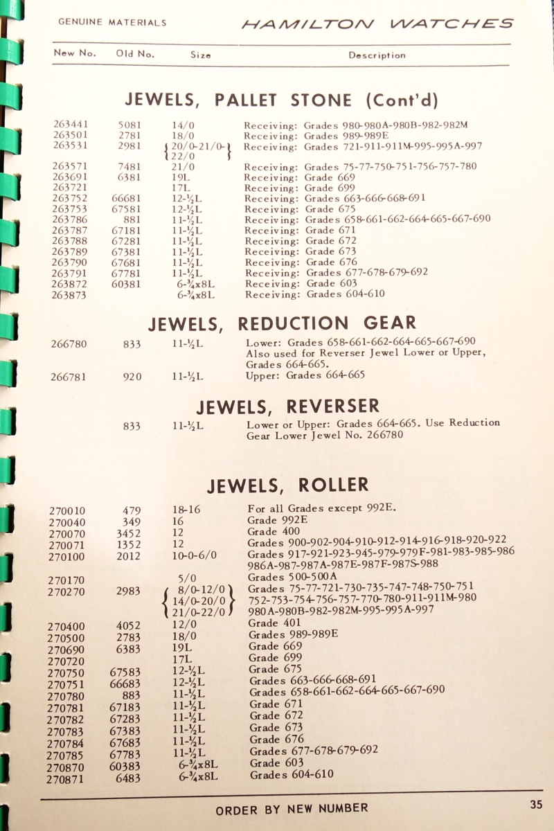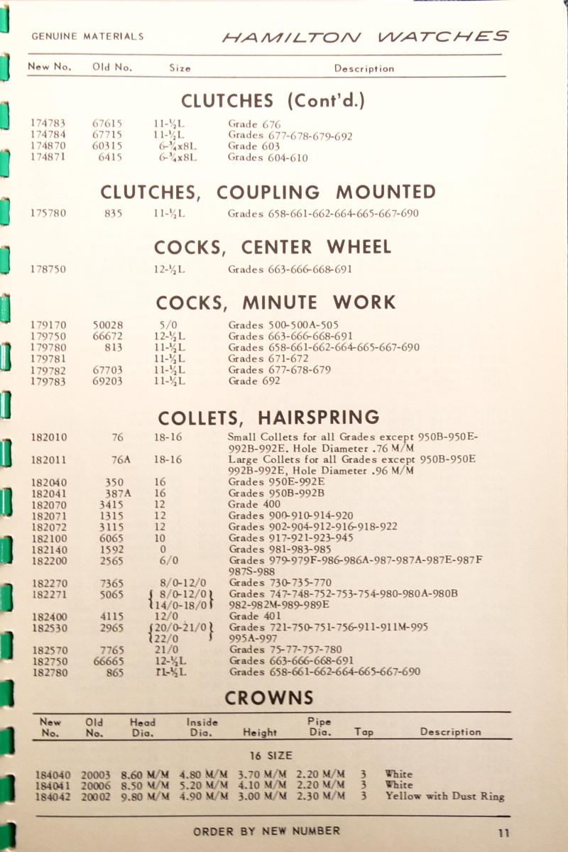 Hamilton Watch Parts Catalog