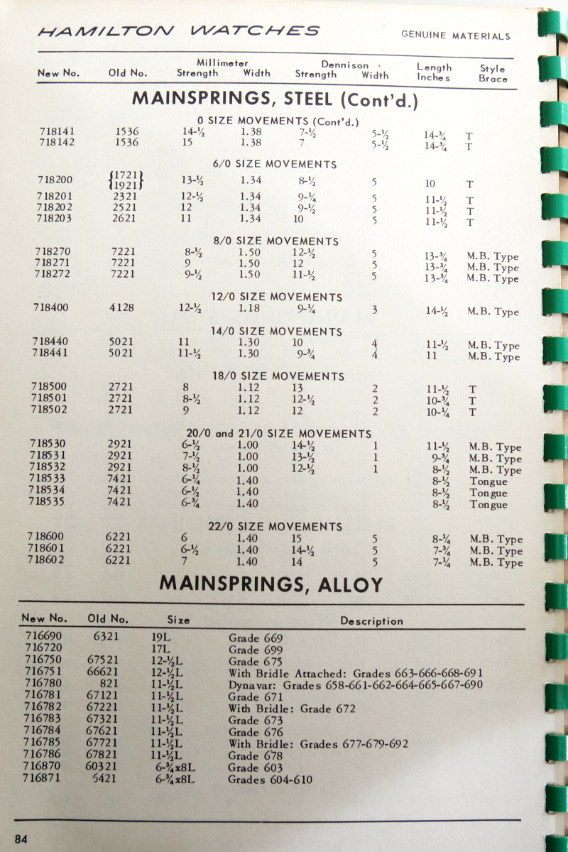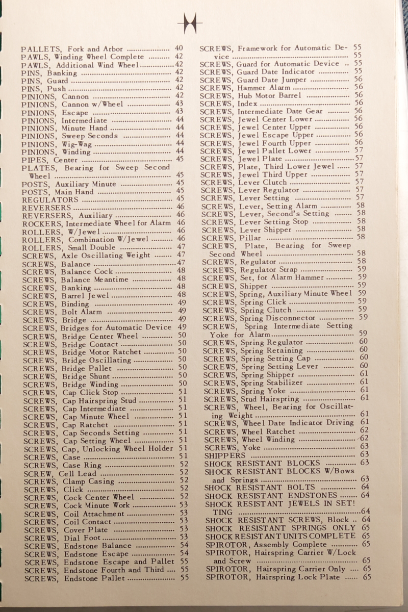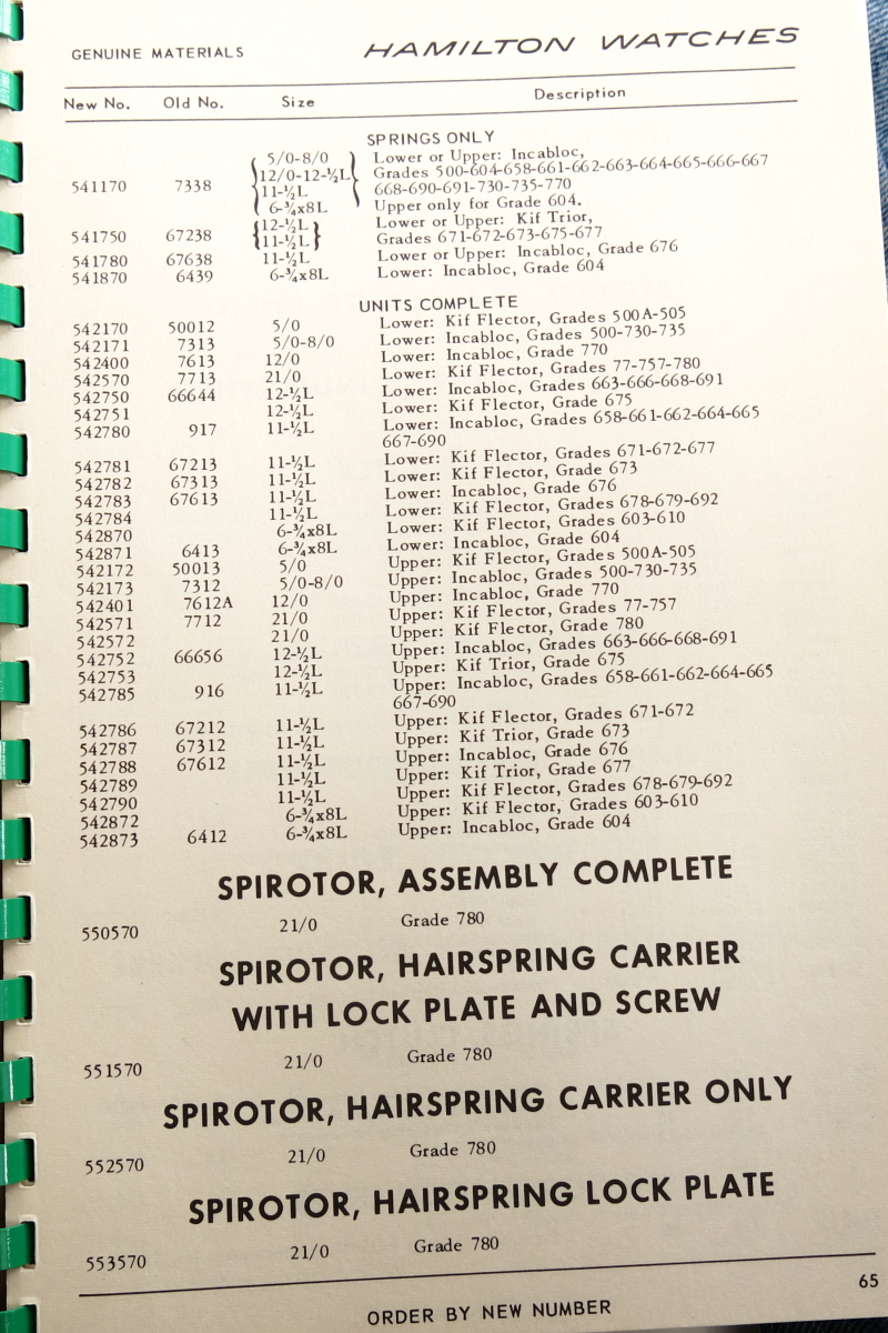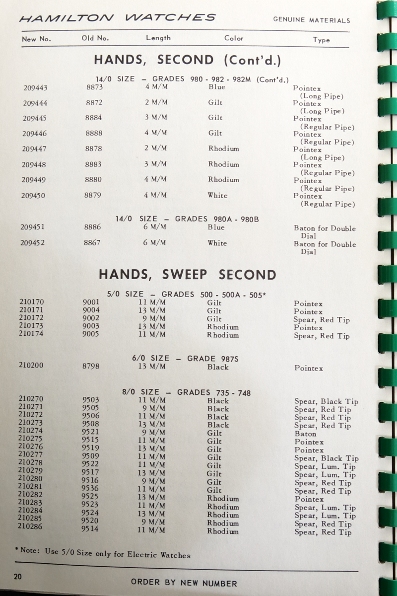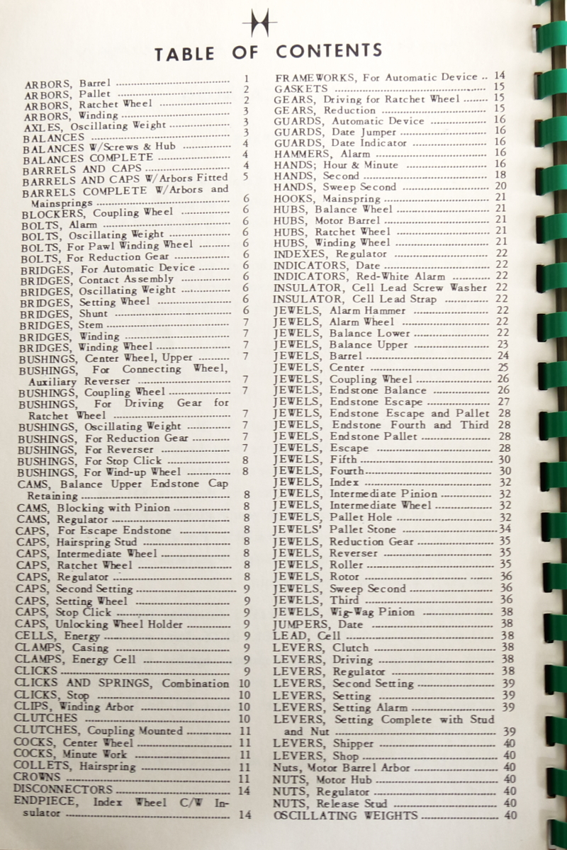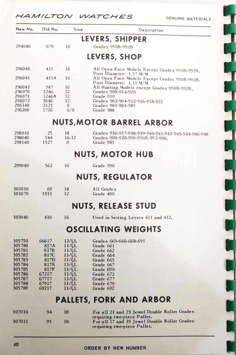 Hamilton Watch Parts Catalog