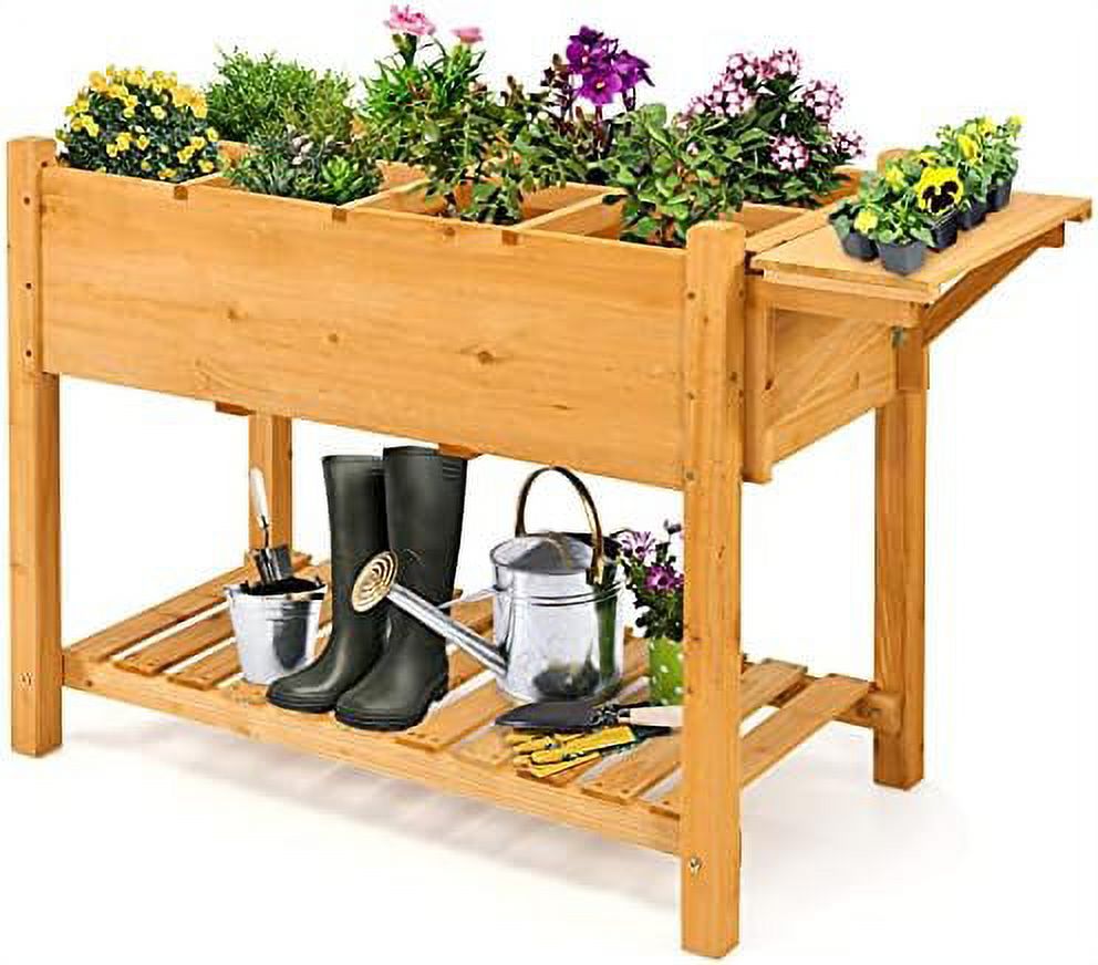 Raised Garden Bed with Extra Storage Compartments Outdoor, 34" x 18" x