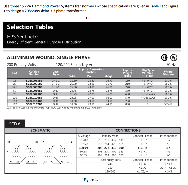 Use three 15 kVA Hammond Power Systems transformers