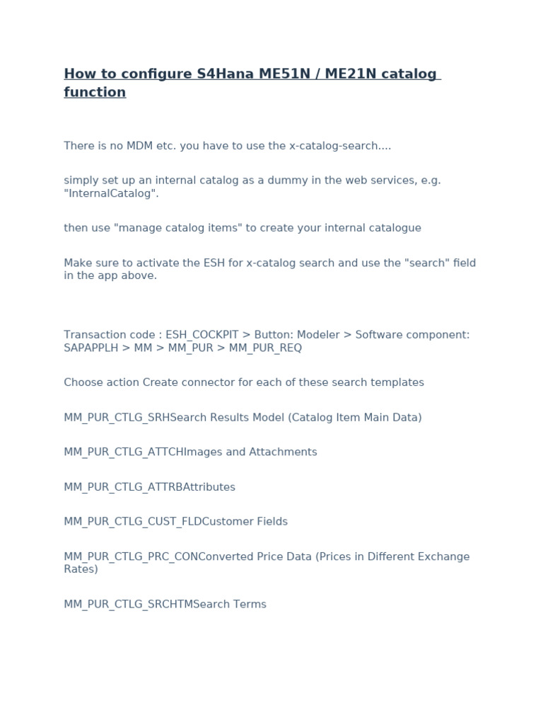 How To Configuration S4 HANA Catalog Function ME51NME21N PDF