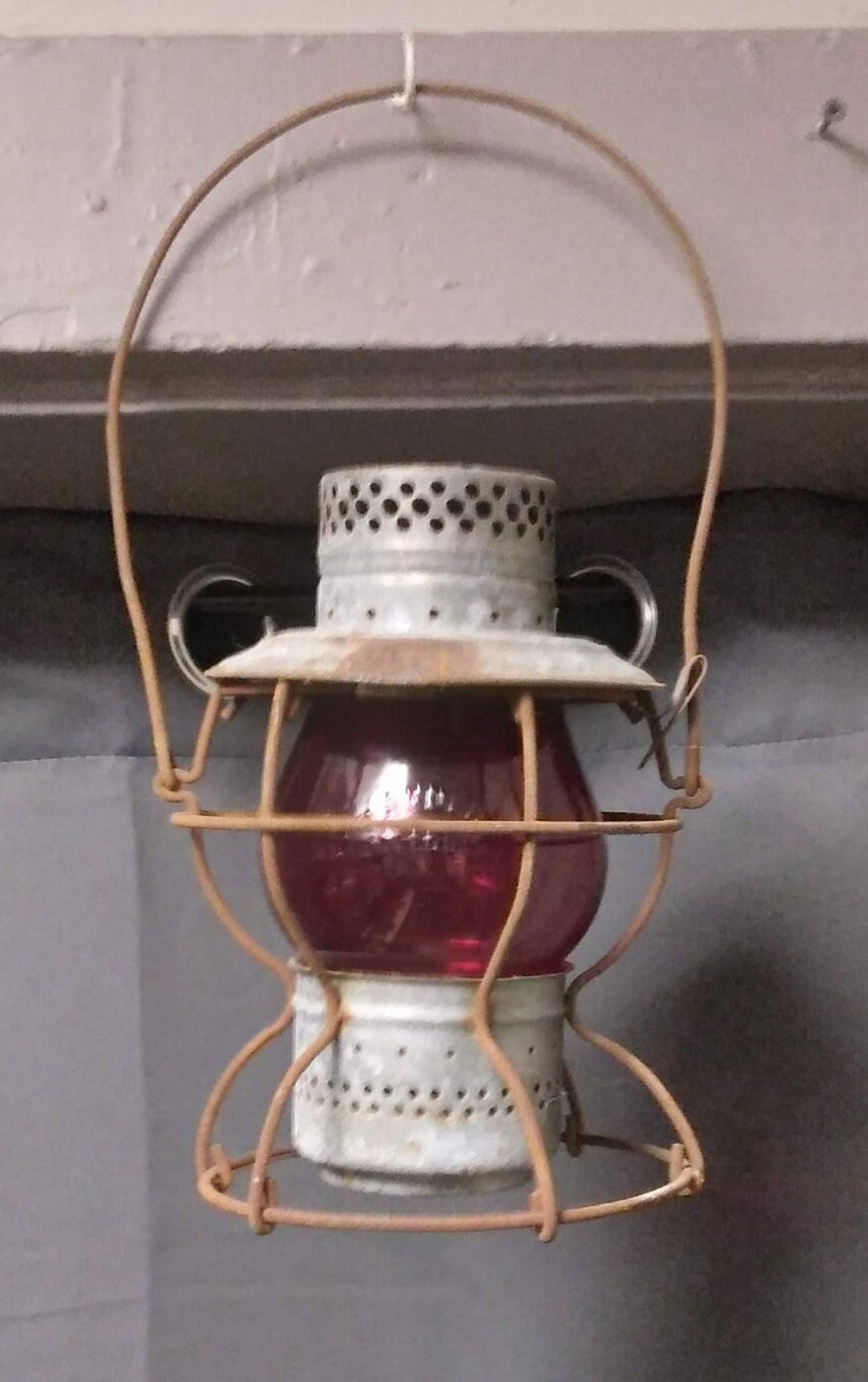 Vintage Handlan St. Louis Lantern Red Glass Globe Handlan Etsy