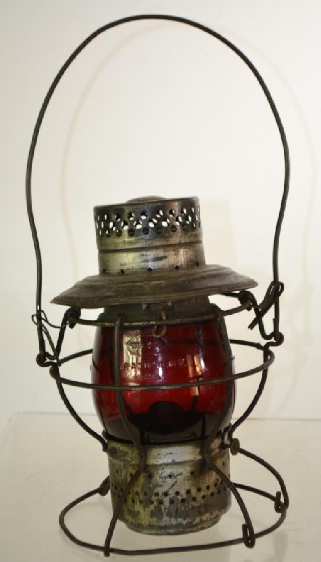 Lot Handlan St.Louis USA lantern w/ red globe. 9.5”. Marked PRR on lid.